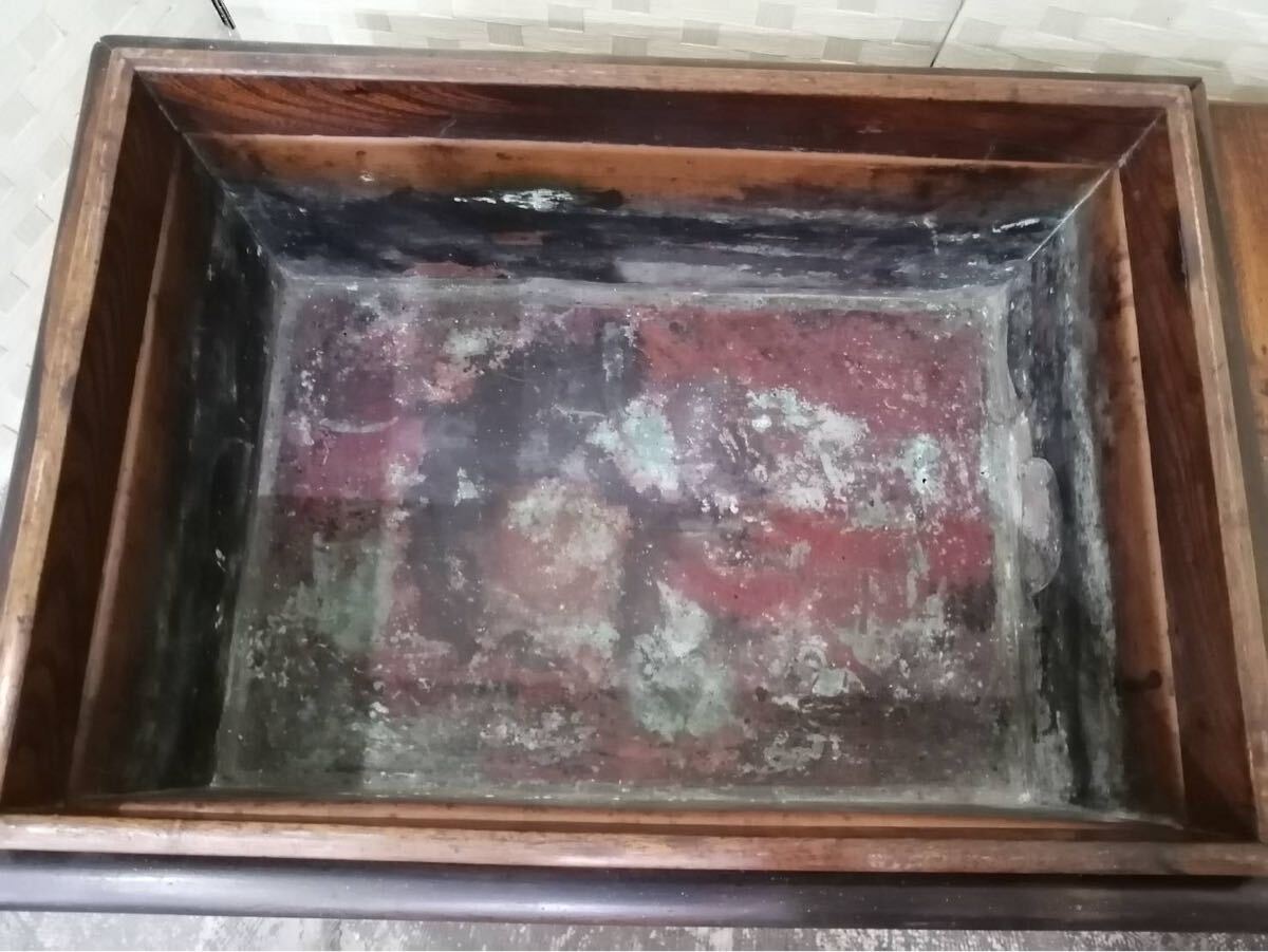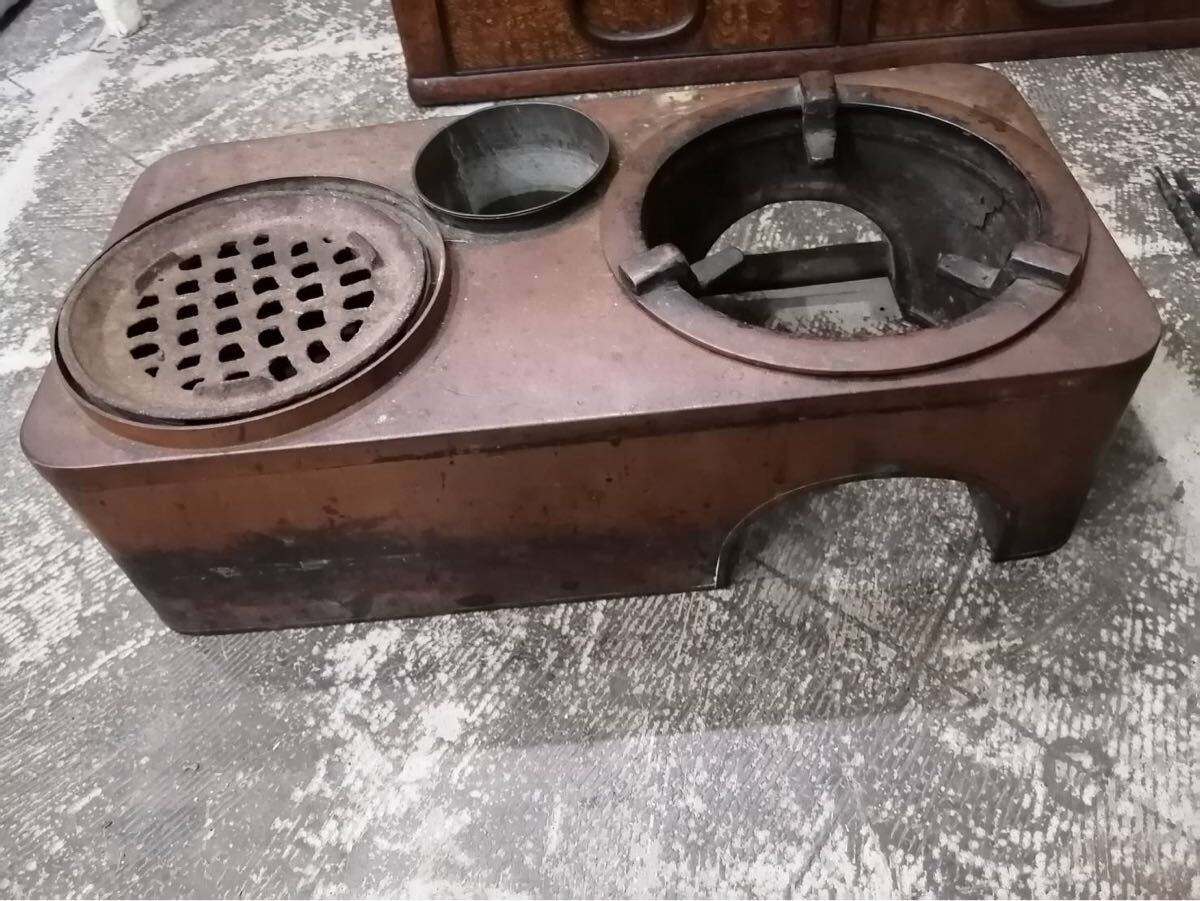◯①【A】長火鉢 木製 引き出し銅壺 火箸 灰ならし付属昭和レトロ ビンテージサイズ幅72㎝奥行き40㎝高さ35㎝ 18㎏ あ