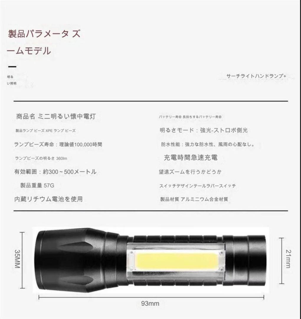 新品 超強力ハンディライト 懐中電灯 LEDランタン USB充電式 キャンプ 夜釣り バーベキュー ワークライト 作業灯 ブックライト 送料無料