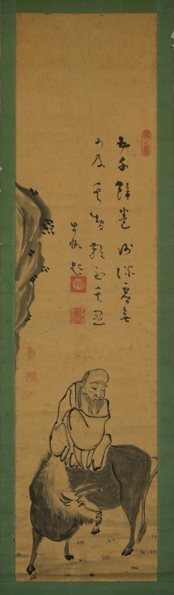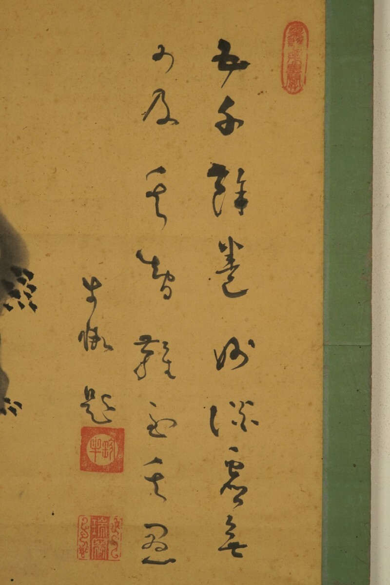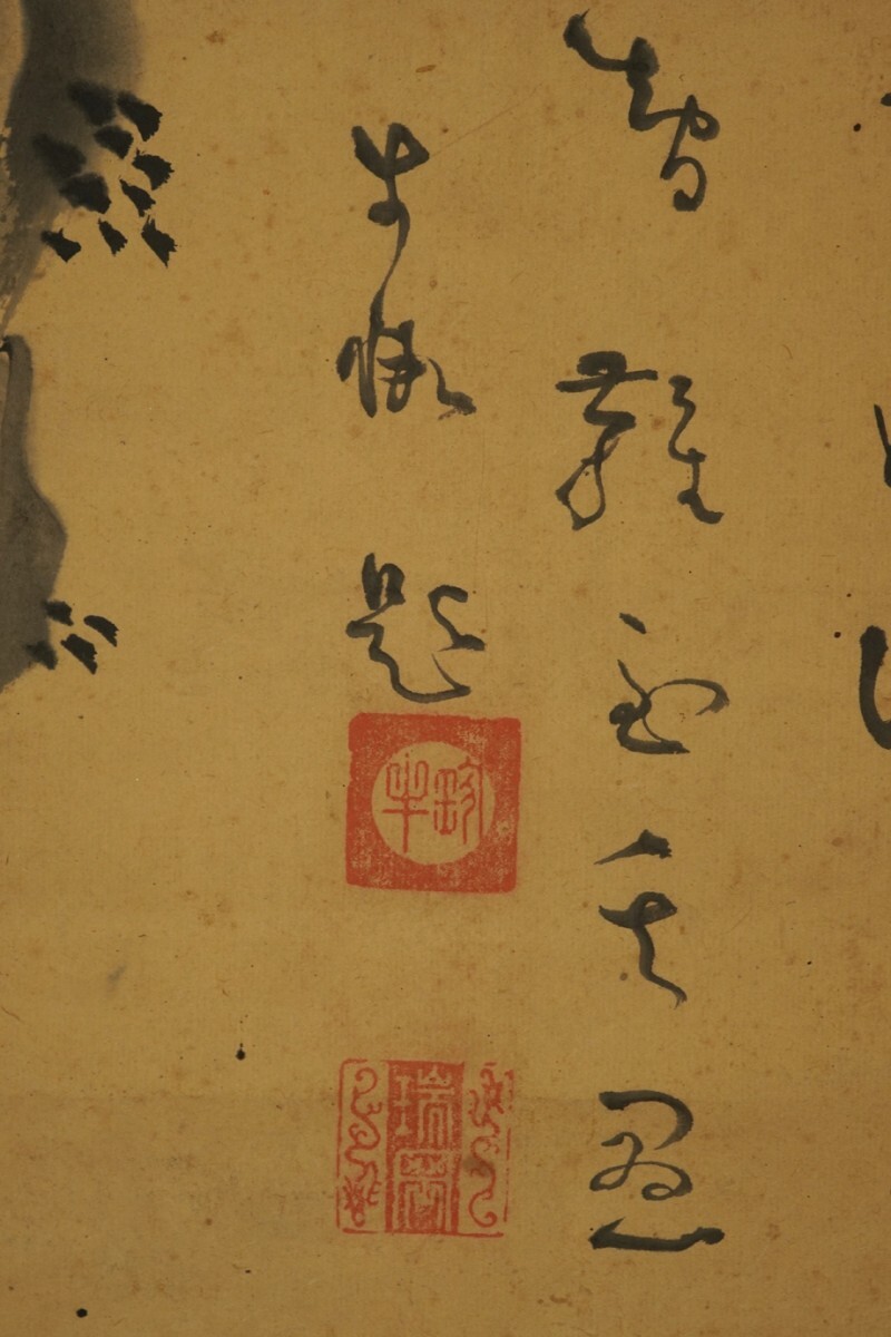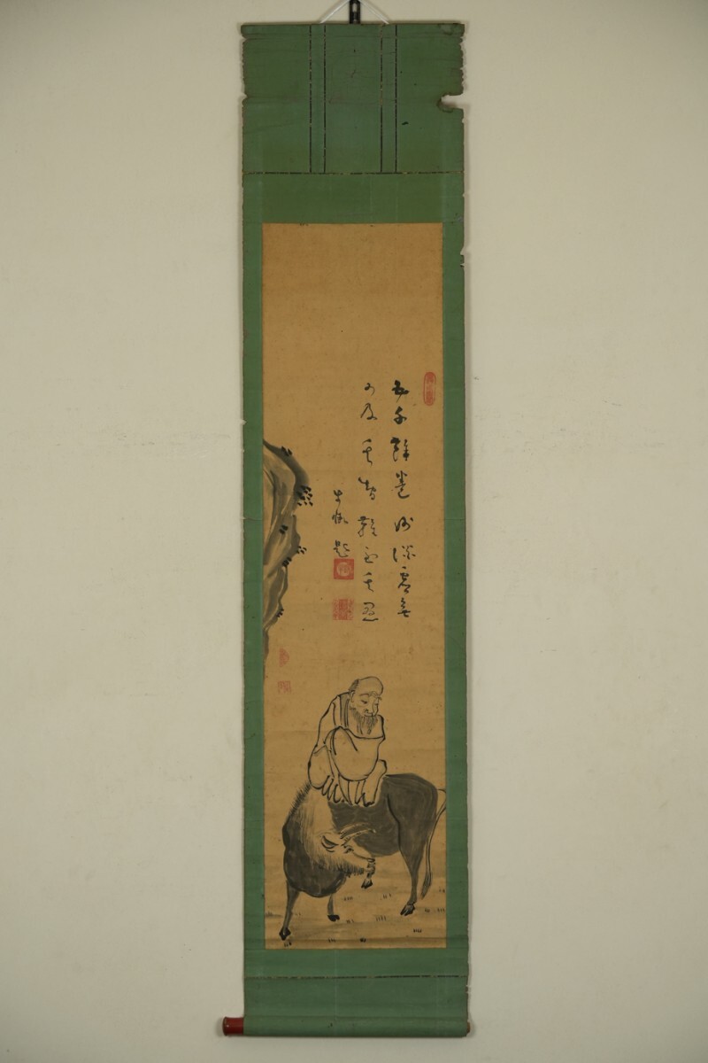 総丈サイズ…横 30.5 × 縦 137.5 cm 紙本水墨・箱入 状態…シミ・オレ・傷ミ 巻緒掛緒無 片軸先無 箱傷ミ 【印刷ではありません】 【真作】 瑞岡珍牛 江戸中後期の曹洞宗の僧。肥後生。俗姓は佐藤。肥後東向寺で出家。長門笑山寺の海外亮天の法をつぐ。東向寺、美濃竜泰寺の住持などを経て尾張万松寺をついだ。豪潮寛海と親交があったことで知られる。画をよくし、『永平道元禅師行状図絵』を著した。文政5年(1822)寂、80歳。 |