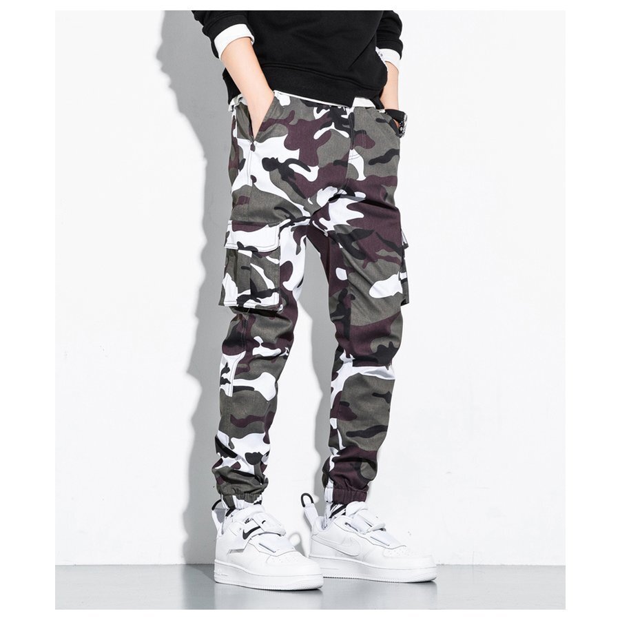 カーゴパンツ メンズ 迷彩 裾リブ 絞り テーパードパンツ ミリタリー系 カジュアル オシャレ ワーク 作業着 春夏 秋