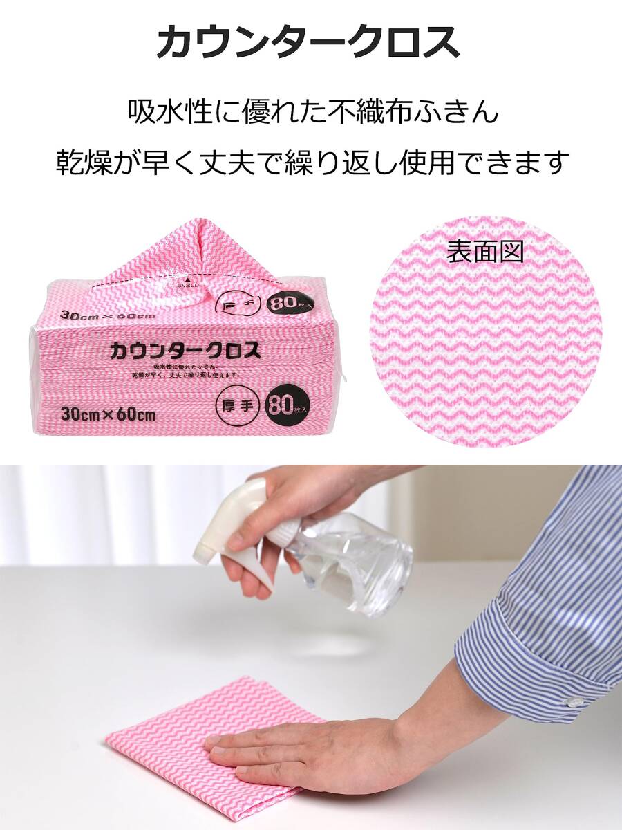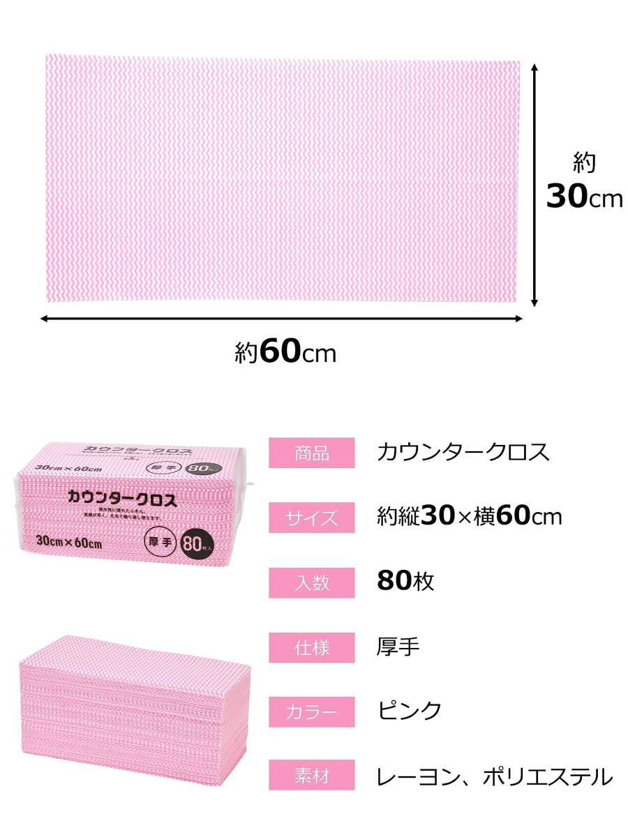 大和物産 カウンタークロス 厚手 80枚 ピンク 約60×30cm 使い捨て 不織布 ふきん テーブルダスター 業務用