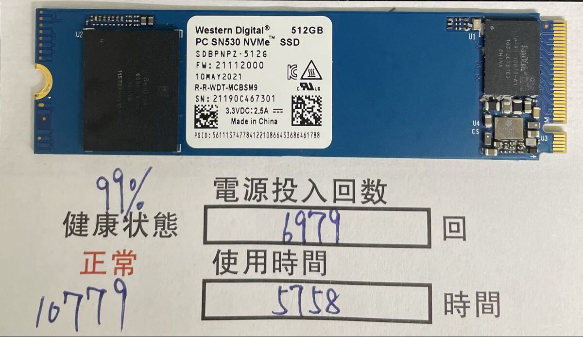 10779/中古品/SSD/M.2 NVME/2280/WD/512GB/動作確認済み/返品返金対応/納品書発行可(商品説明文ご確認下さい)