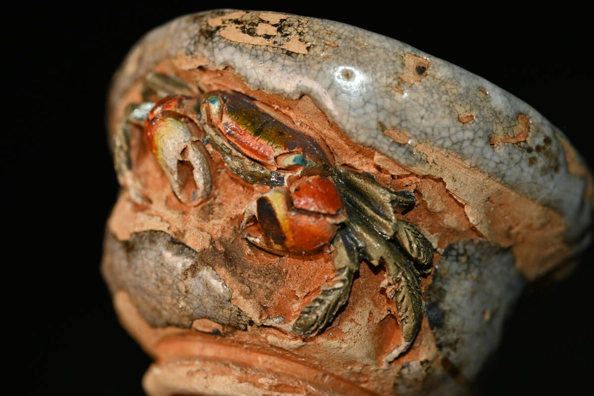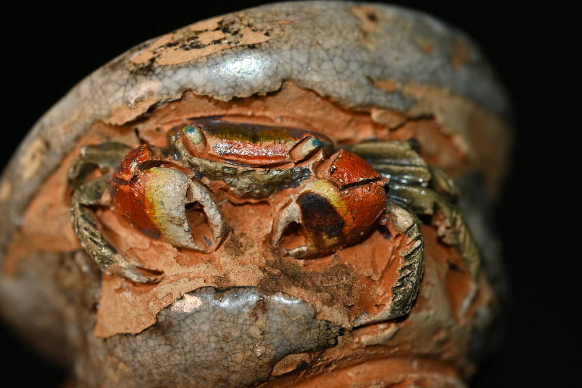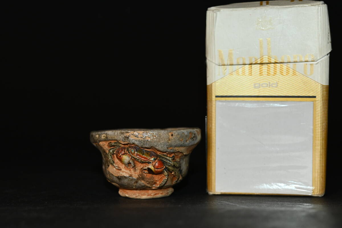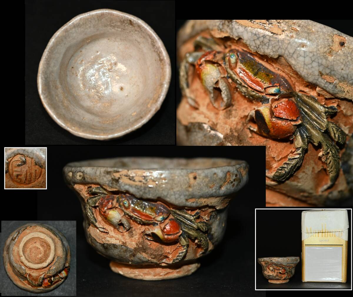愛媛 伊予松山 水月焼 天神蟹 蟹彫込細工 酒盃 箱無 蟹細工 細密彫刻 酒器 猪口 酒杯 酒呑 盃 真贋保証 | |||