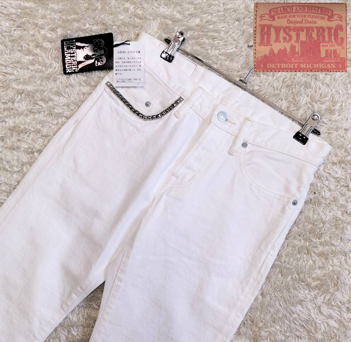 【未使用★赤耳】W29 HYSTERIC GLAMOUR スタッズ ホワイトデニムパンツ/ジーンズ/白●ヒステリックグラマー (57)