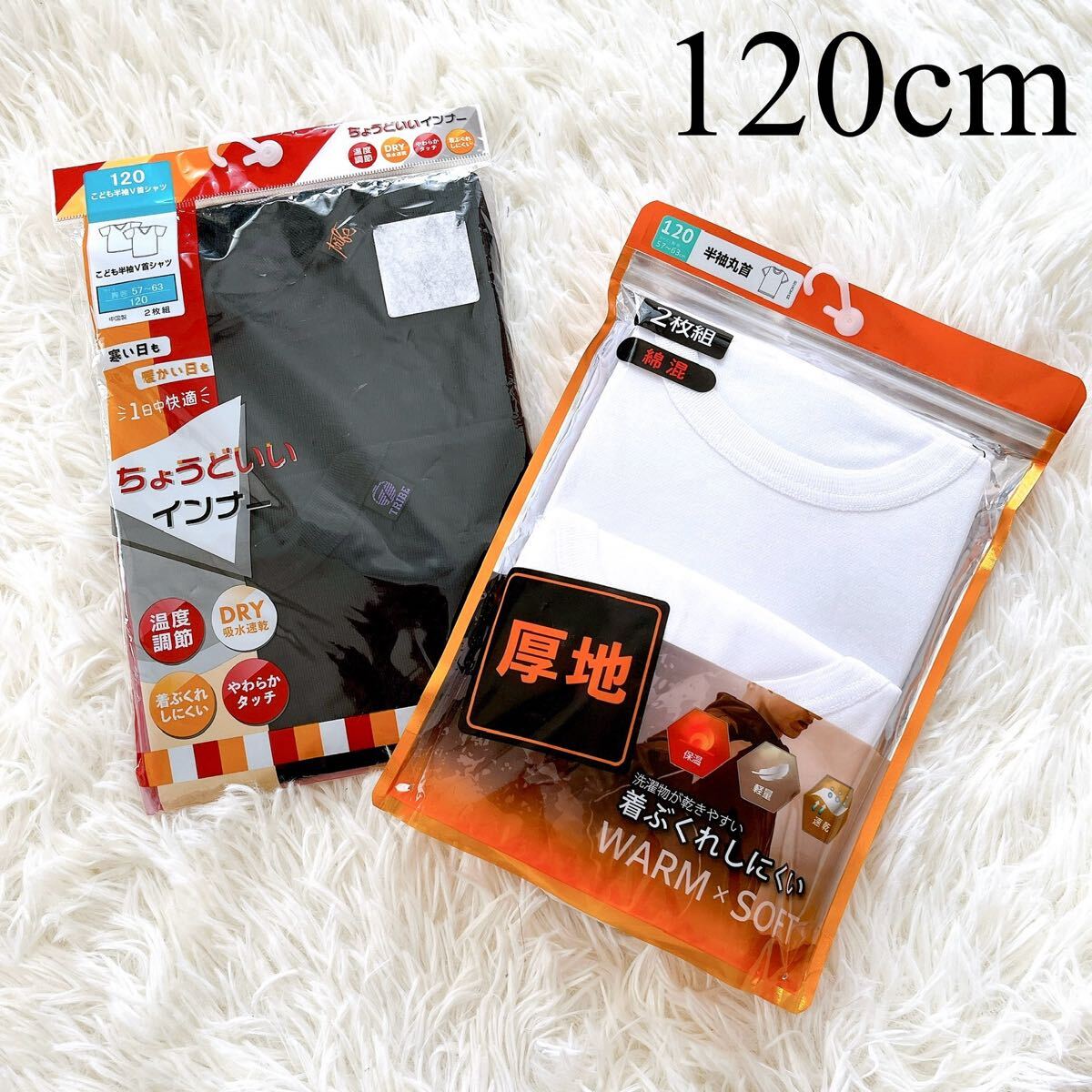 肌着/下着/DRY/アンダーシャツ/インナー/インナーシャツ/半袖/半袖肌着/丸首/Vネック/120cm/新品/未使用/美品/未開封/黒/黒色/ブラック/白/白色/ホワイト/2枚入り/2枚組/2セット/4枚/セット/男の子/男児/子供/こども/子ども/キッズ/KIDS/半袖シャツ/