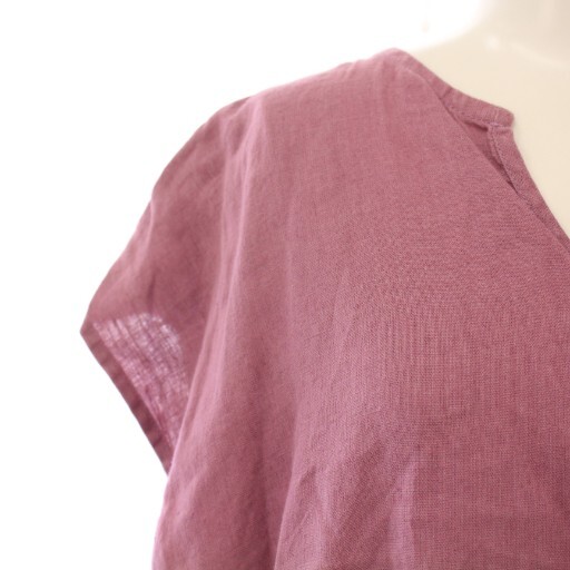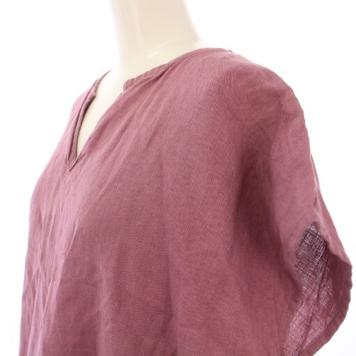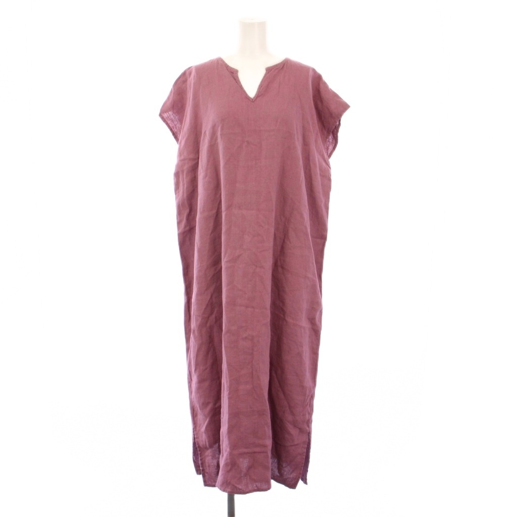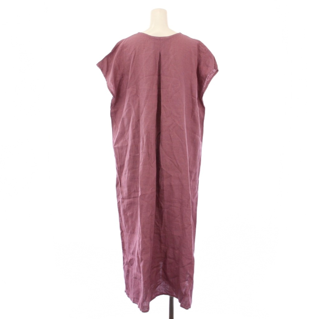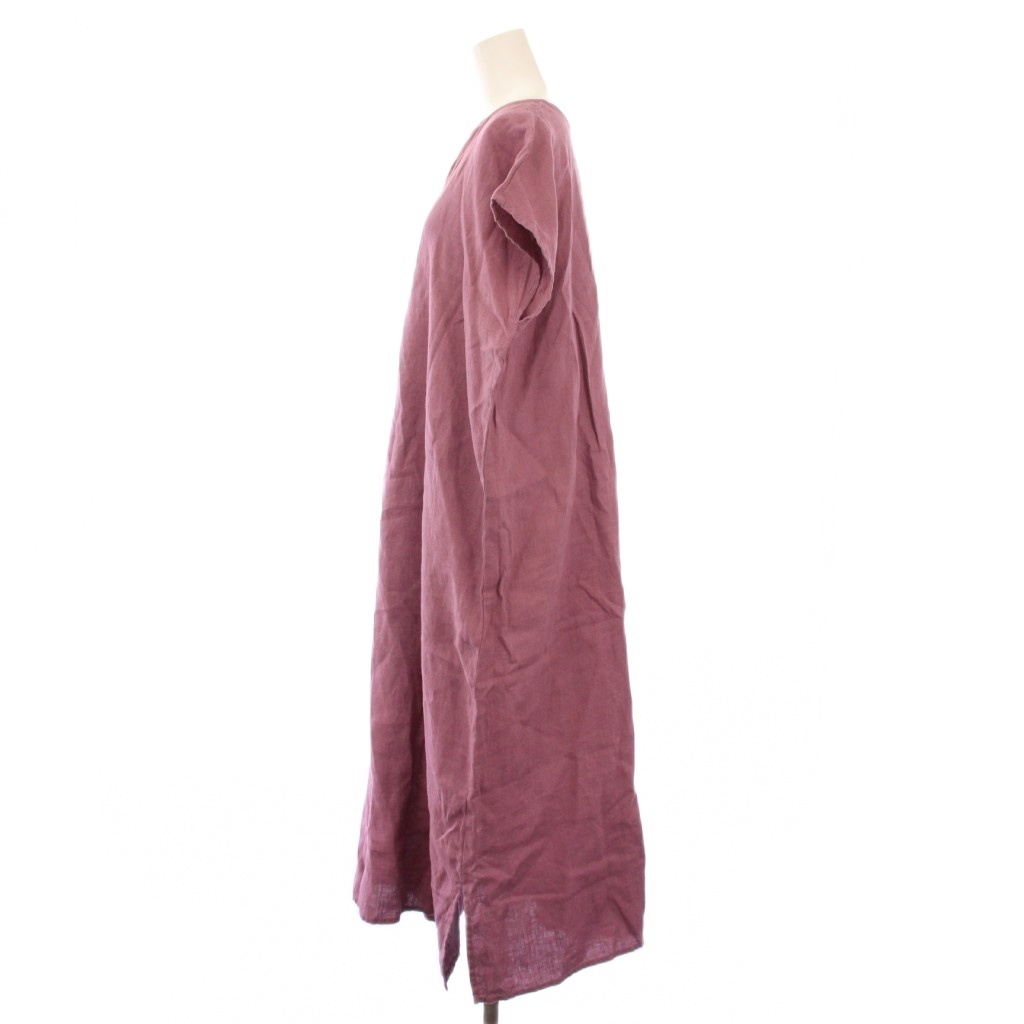 フォグリネンワーク B:MING LIFE STORE by BEAMS ワンピース ミモレ ロング スキッパー フレンチスリーブ 半袖 無地 麻 リネン F 紫