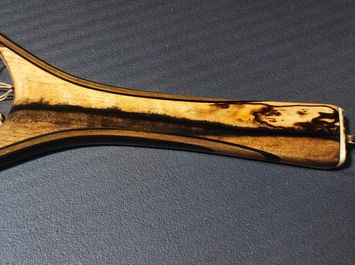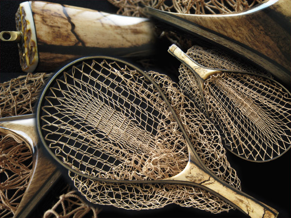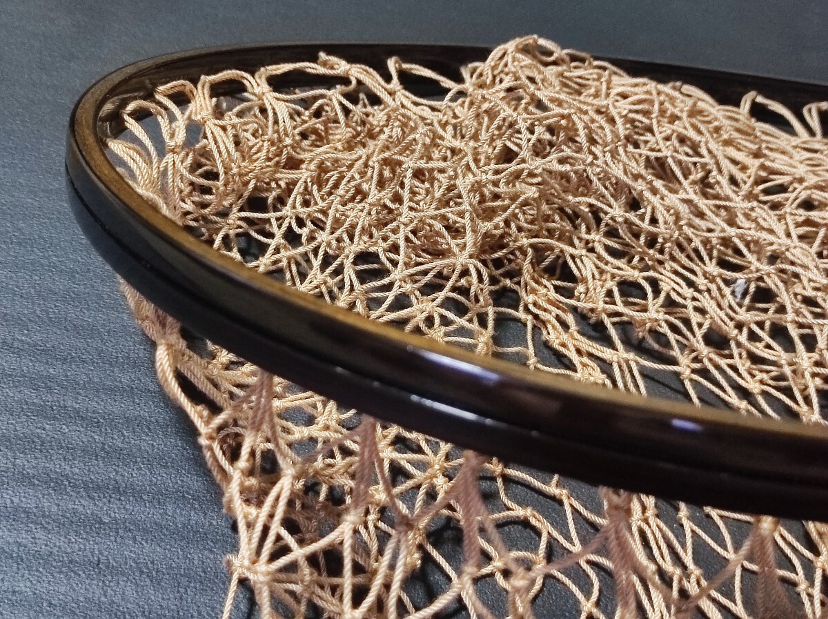 黒柿を使った少し大きめのネットです。ヒートン部にはスタッグが施してあります。
