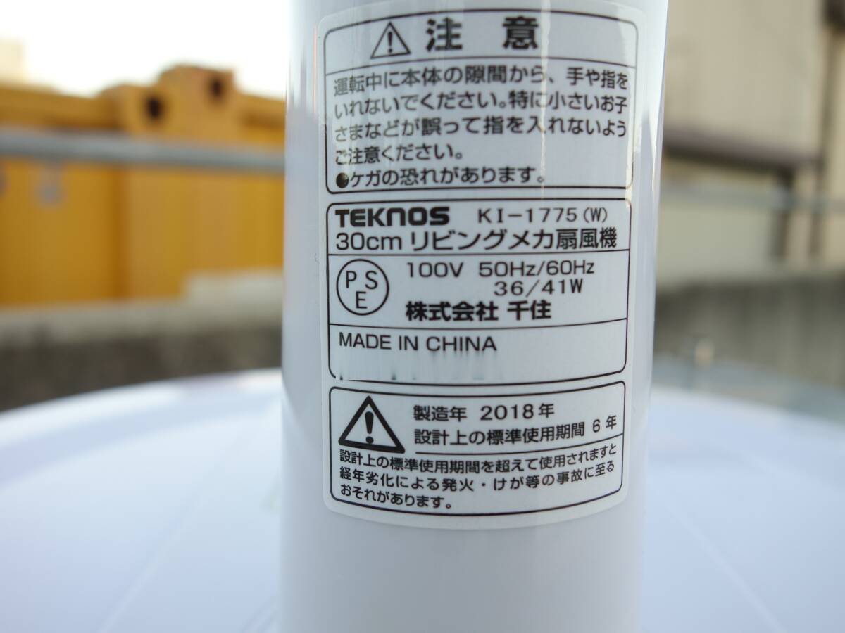 【中古】M▽TEKNOS テクノス 扇風機 リビングメカ扇風機 2018年 30cm径 5枚羽根 ホワイト KI-1775 (27917)