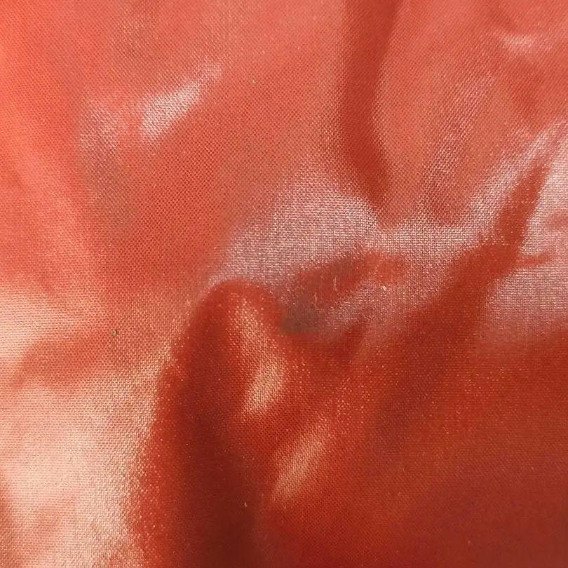 Features a glossy nylon finish, detachable hood, and front zipper closure.