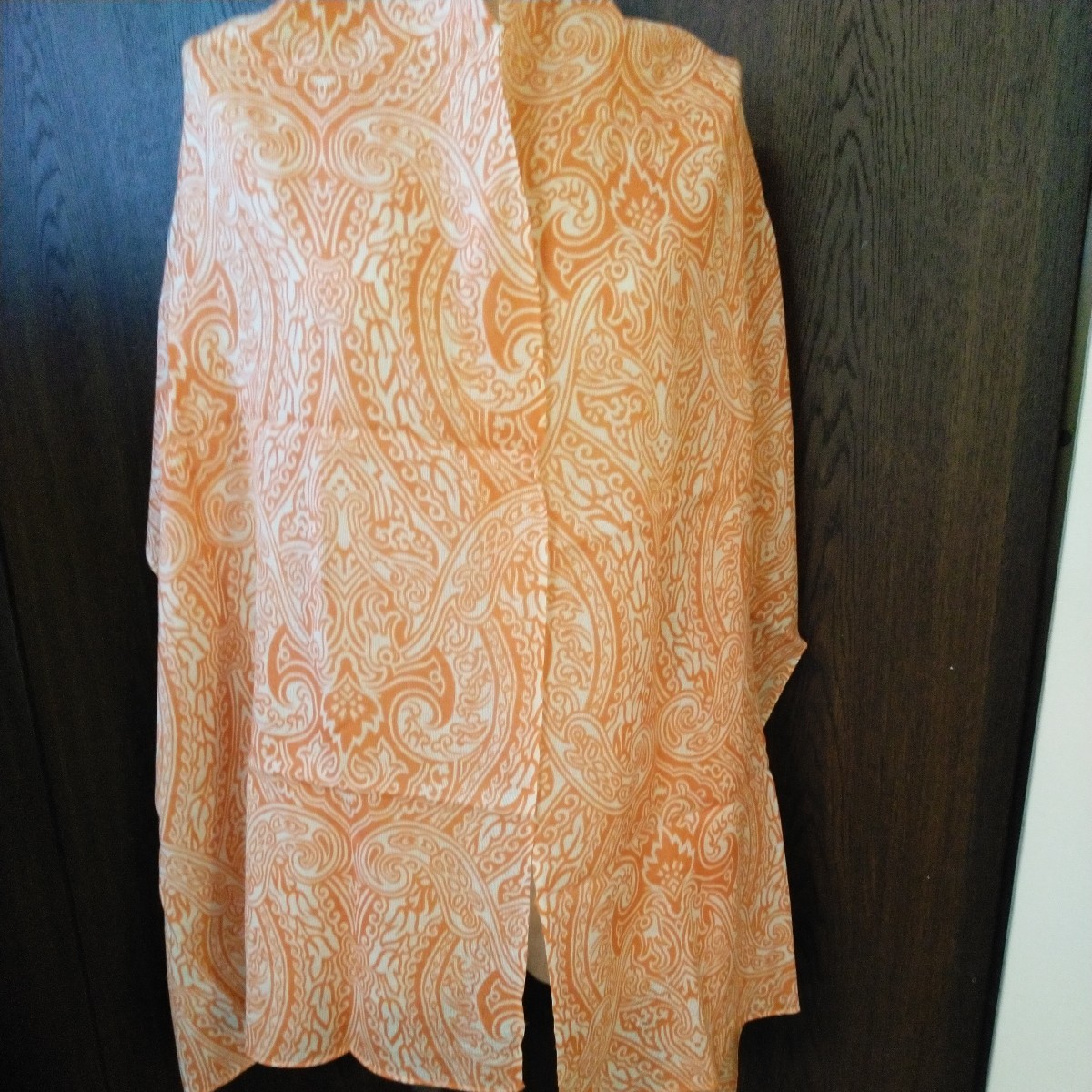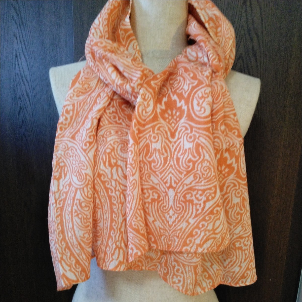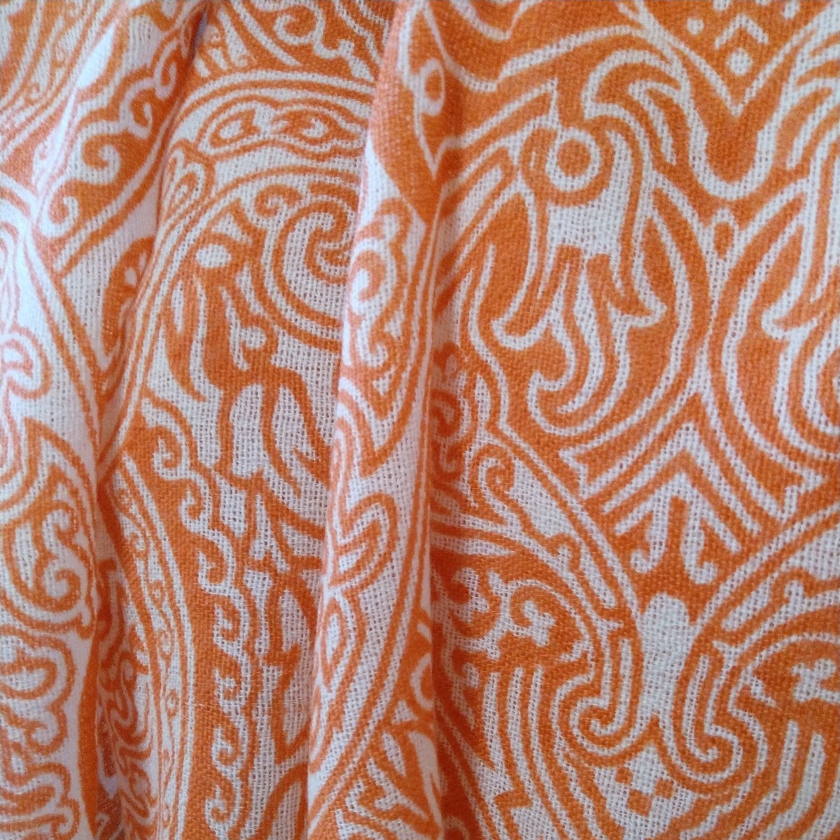 美品 ウール100% ストール マハラジャ ペイズリー柄 プリント サラッとした素材 オフホワイト地×オレンジ インド製