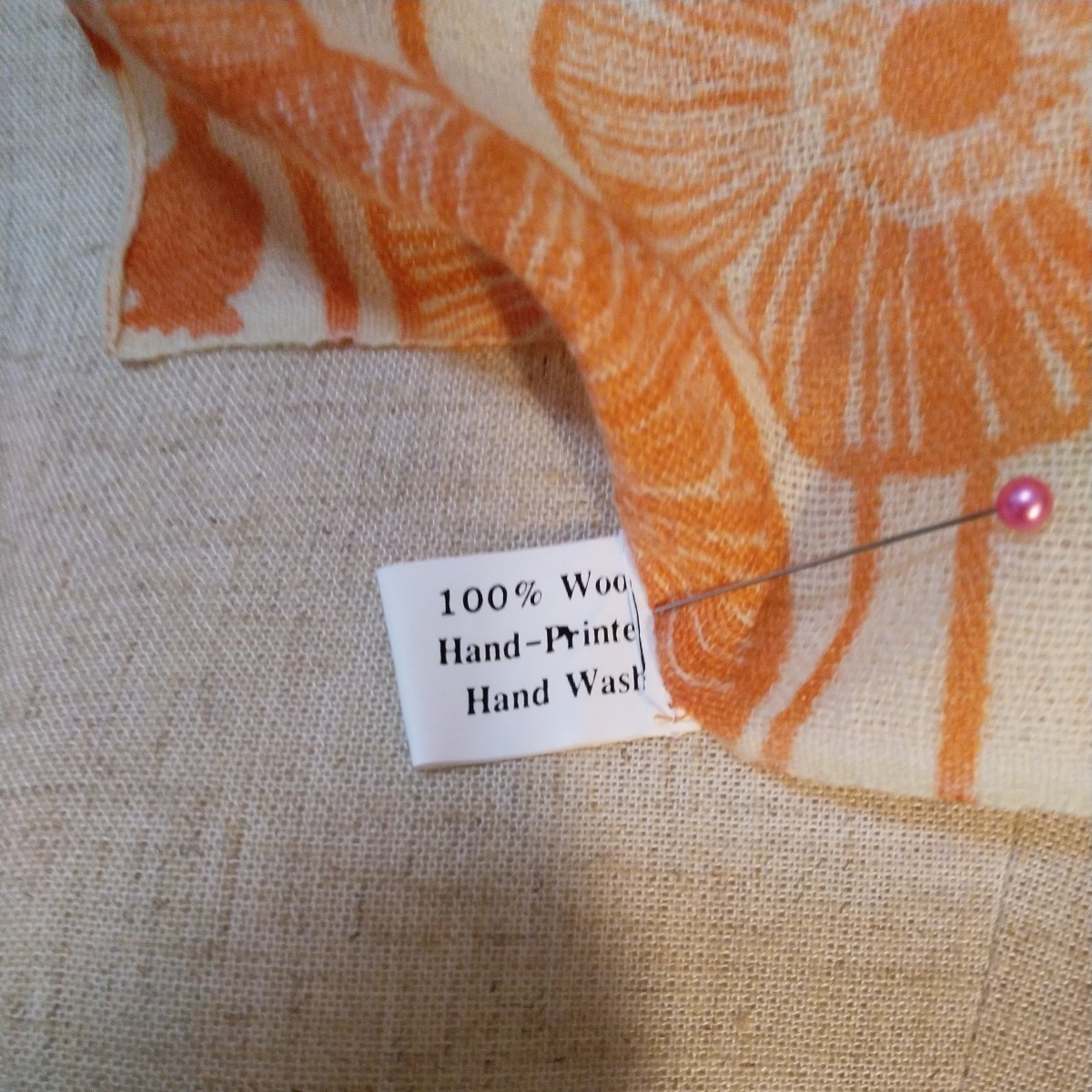 美品 ウール100% ストール マハラジャ ペイズリー柄 プリント オフホワイト地×オレンジ インド製