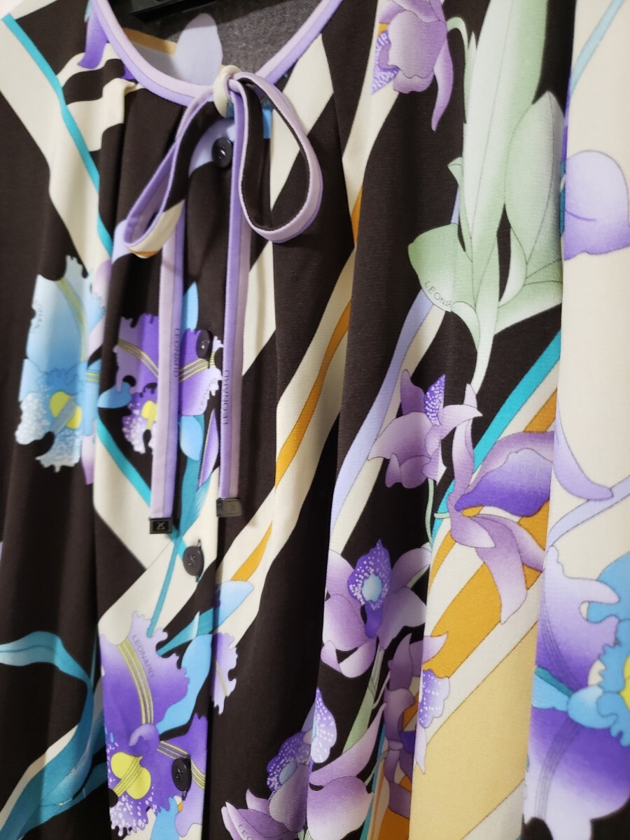 ボタンは全開にできますのでカーディガンとしてもお召しいただけ、無地のワンピースにボウタイだけ結んでも可愛いです。