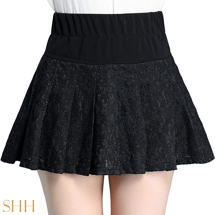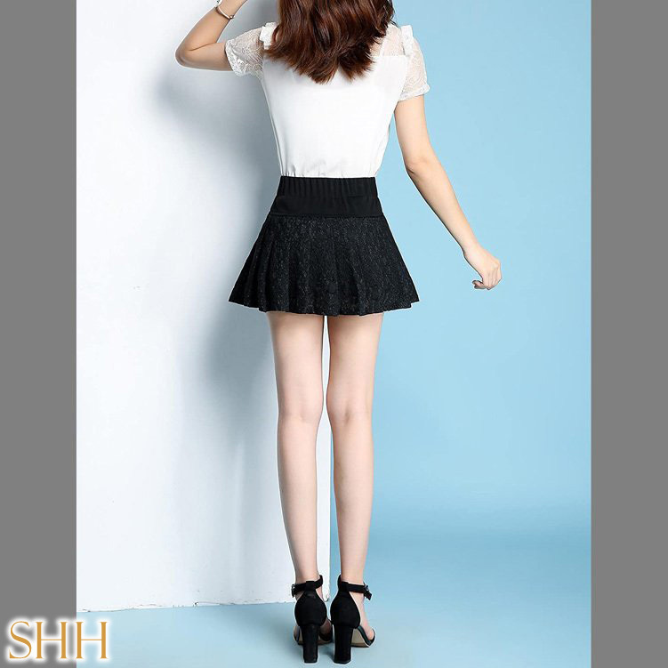 ミニスカート レース プリーツ 黒色 XLサイズ マイクロミニ インナーパンツ無し