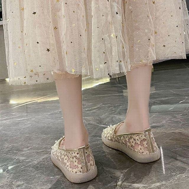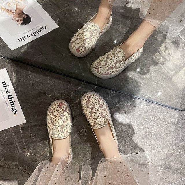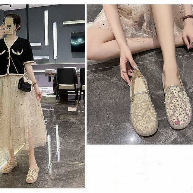 スリッポン ぺたんこ レディース ローファー  花柄 サマーシューズ 通気 夏コーデ 可愛い カジュアル 快適 ベージュ 24cm
