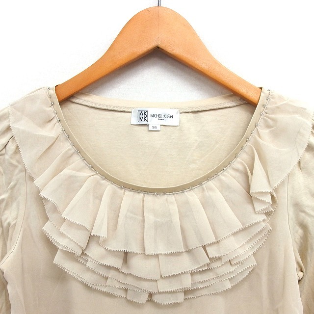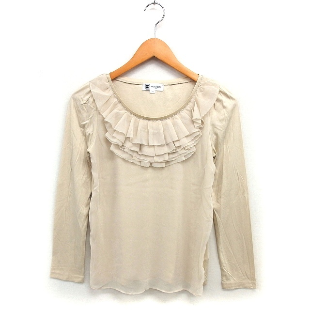 エムケー ミッシェルクラン MK MICHEL KLEIN フリル ブラウス シフォン コットン混 ラウンドネック 長袖 38 ベージュ /NT17 レディース