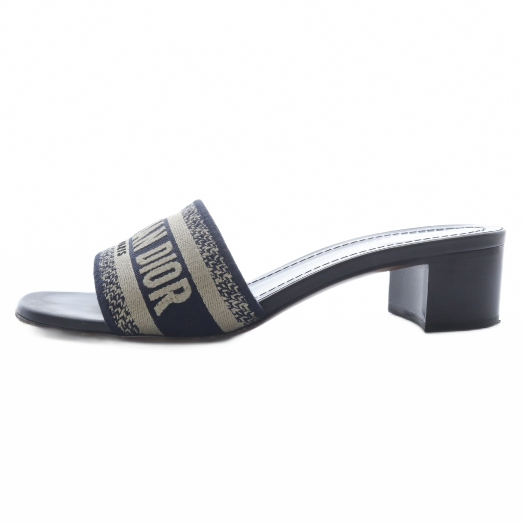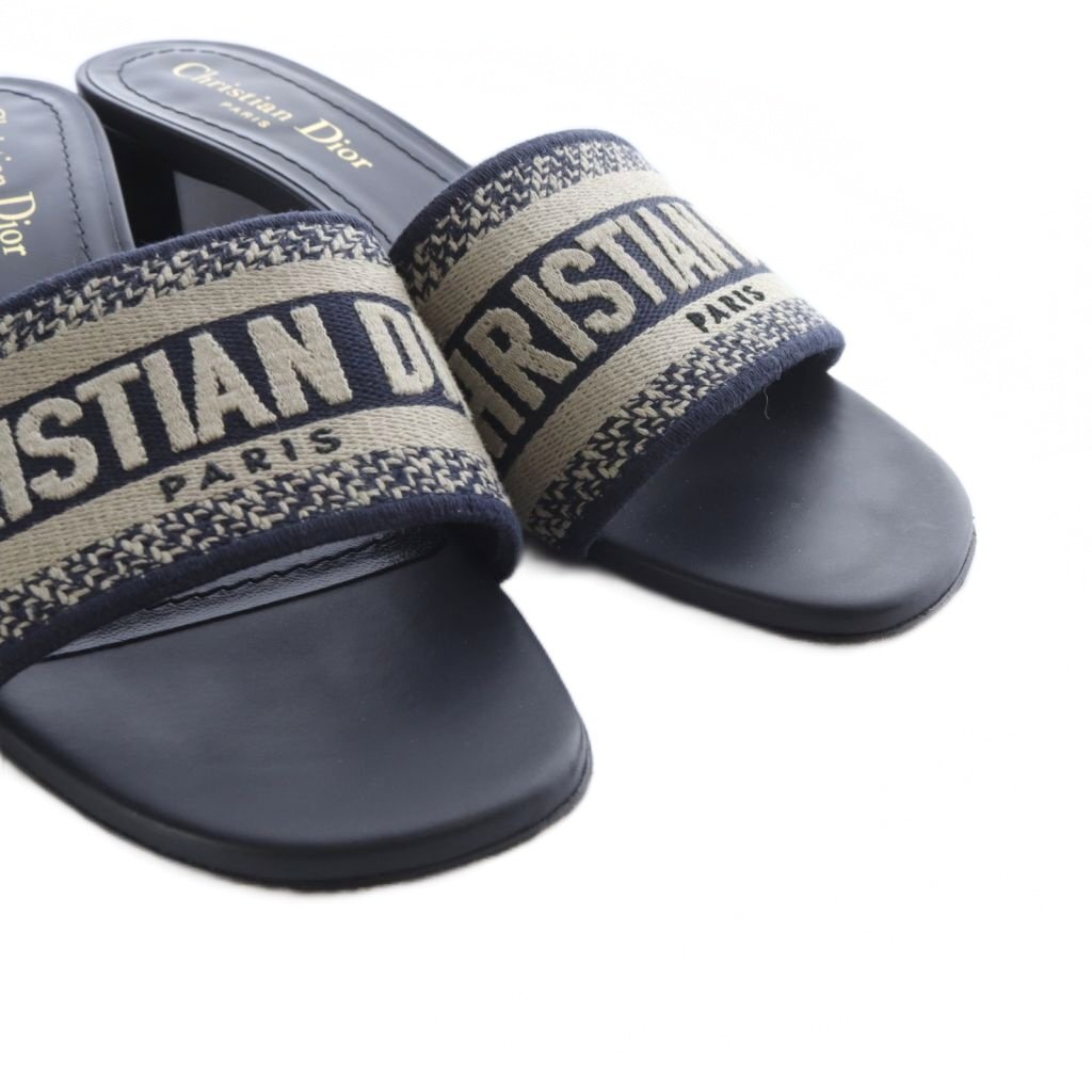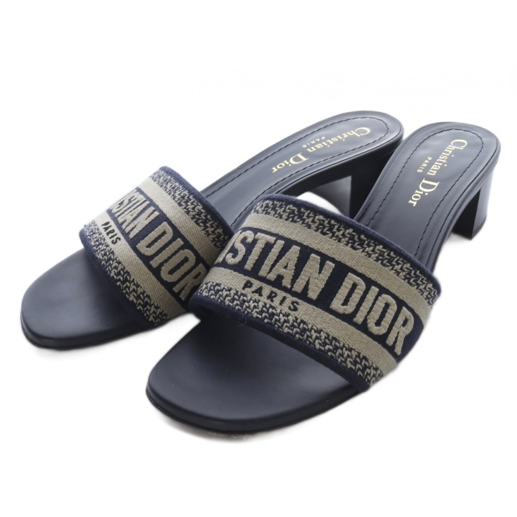 クリスチャンディオール Christian Dior Dway ヒールスライド サンダル ハイヒール エンブロイダリー コットン 36.5 ネイビー