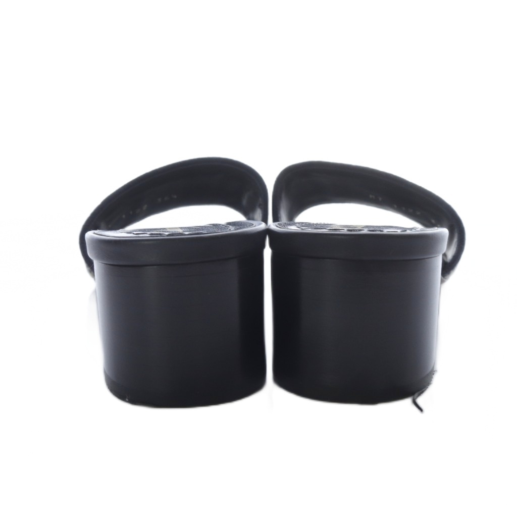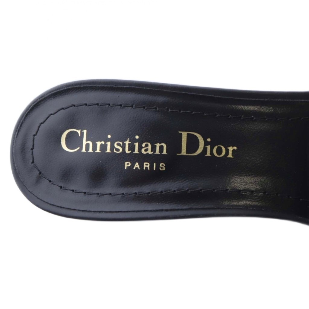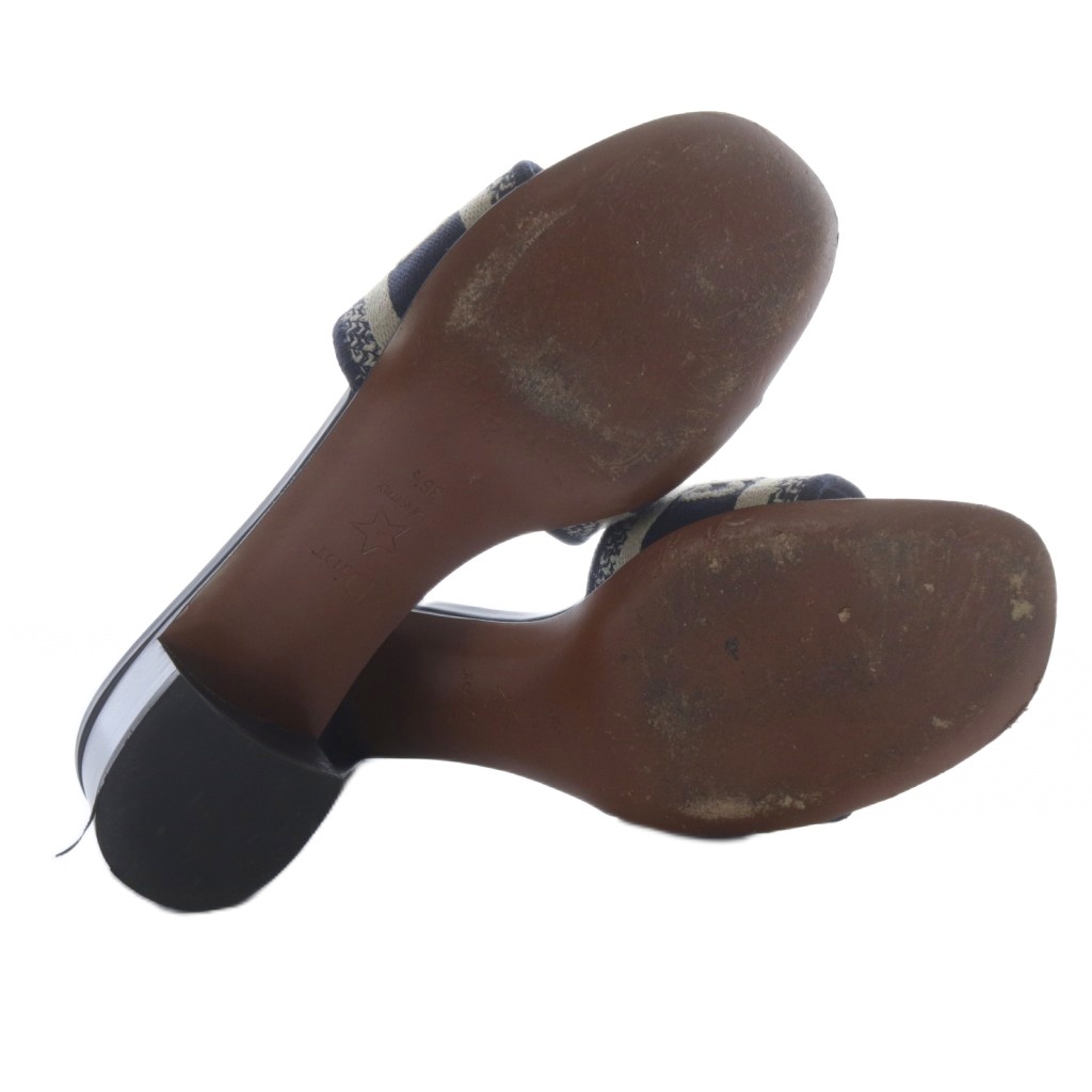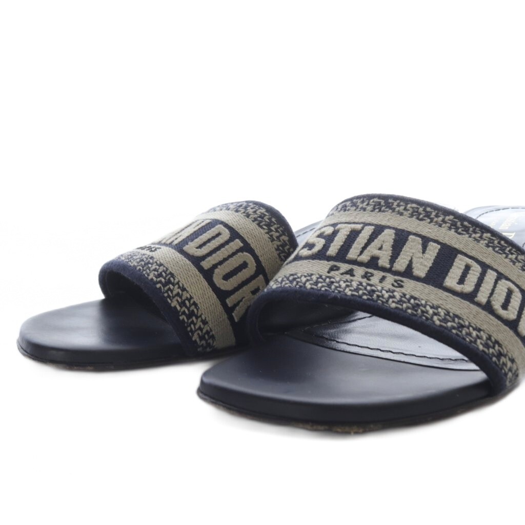クリスチャンディオール Christian Dior Dway ヒールスライド サンダル ハイヒール エンブロイダリー コットン 36.5 ネイビー