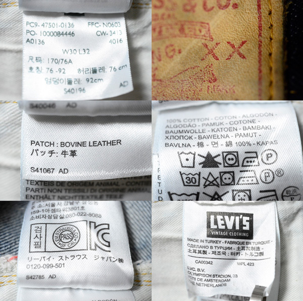アイテム詳細 LEVIS VINTAGE CLOTHING LOT.47501 -0136 リーバイス ヴィンテージ クロージング Made In The Japan. (47年 501-XX 歴代の「501XX」の中で最も細身のシルエットである1947年モデル 47501) 隠しリベット等のディティールはそのままに「Made in The World」です。 第二次大戦モデルによる省略されたディテールのいくつかは復活しましたが、 技術の 向上に伴う仕様の変更が行われたため、 501は戦前とは異なる進化を遂げることとなりました。 その代表的なものがアーキュエットステッチで、新手法の二本 針による縫製を取り入れ、 現在のジーンズにも見られる中央がクロスする「ダイヤモンドポイント」となって、このモデルに初めて装備されました。 同時にレザーパッチには、大戦下の簡素化を表していたS501XXの“S”(Simplifiedの頭文字)の表示は外され501XXの表示が復活しました。 ボタンも月桂樹柄のオープントップ型からリーバイスのフルオリジナルである社名入り刻印のものに戻り、ウォッチポケットのリベットも返り咲きました。 しか し、バックストラップやクロッチ(股下)リベットは、この時代には必要とされなくなったため省略されたままとなりました。 他に隠しリベットや片面のみ刺繍 されたビッグEのレッドタブなど、ディテールは、アメリカでは、歴代の501で、1番と言われています。 (47501XXは、1947年から1953年まで生産されていました。) Quality COTON 100% リーバイス ジャパン LEVI'S & CO. JAPAN LEVI'S 100% COTTON DENIM |