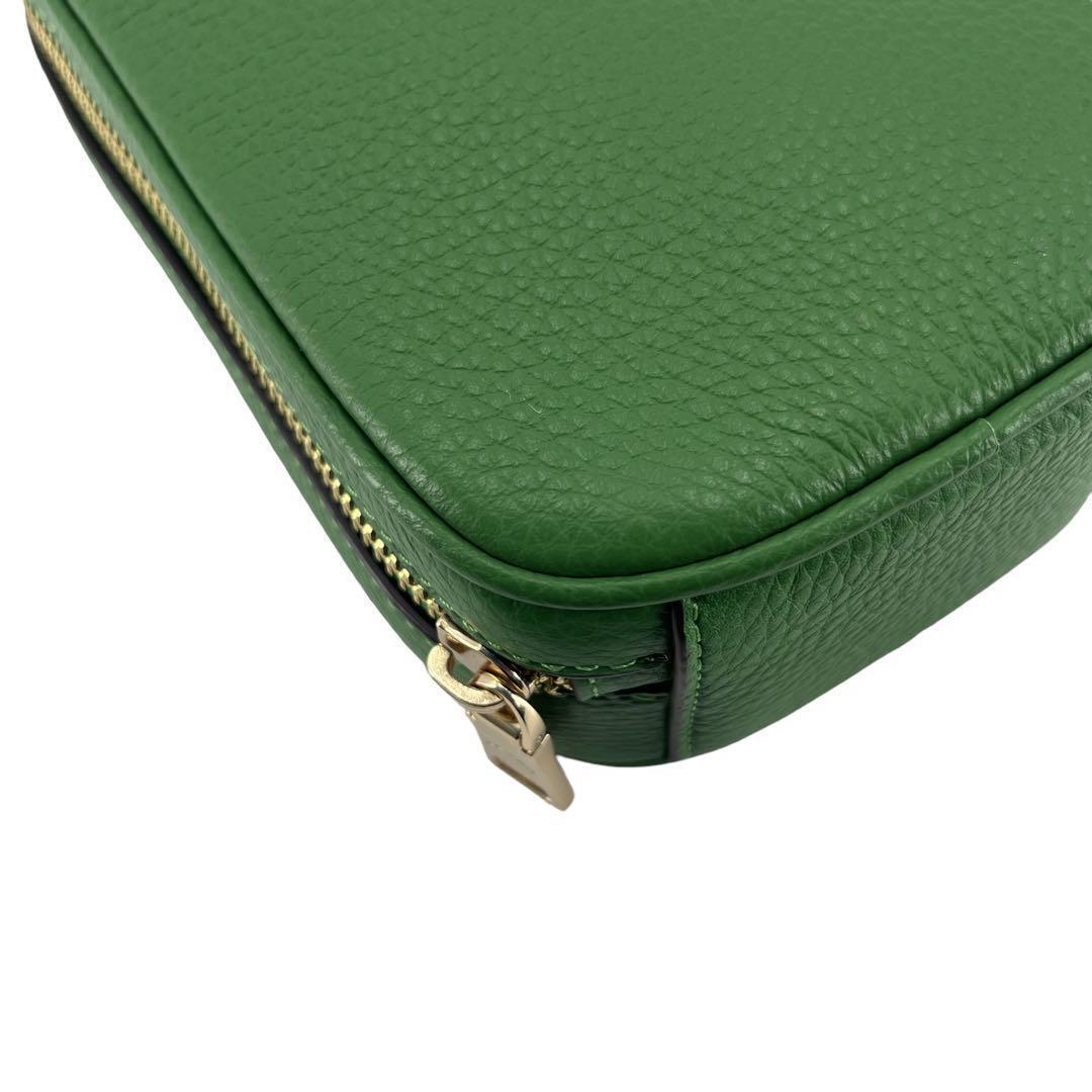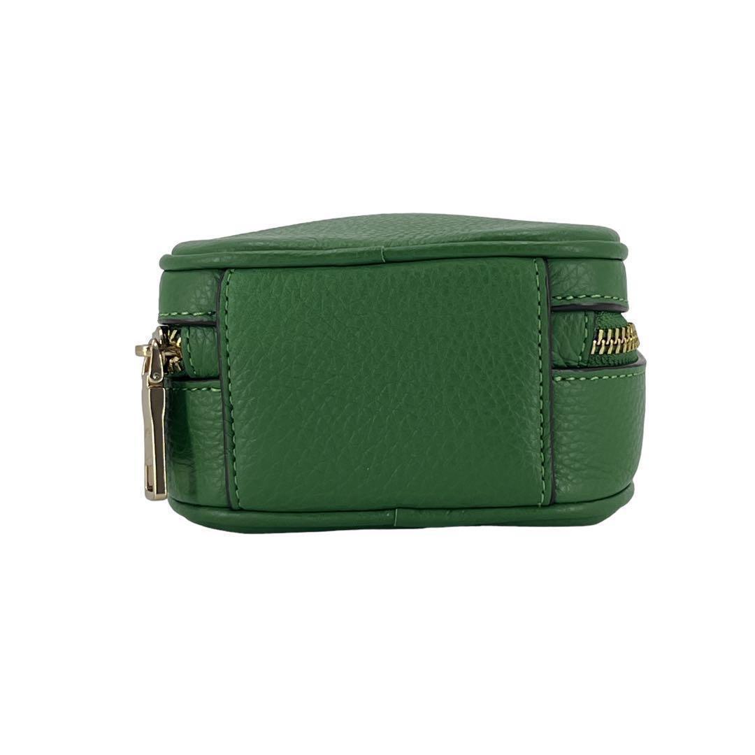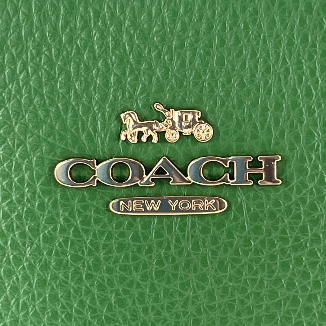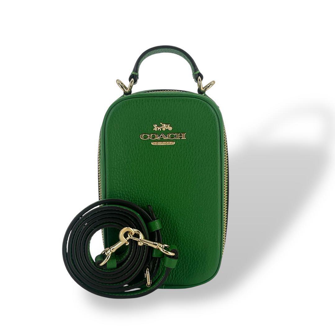 鮮やかな緑色が印象的なコーチのスマホショルダー、ポシェットです