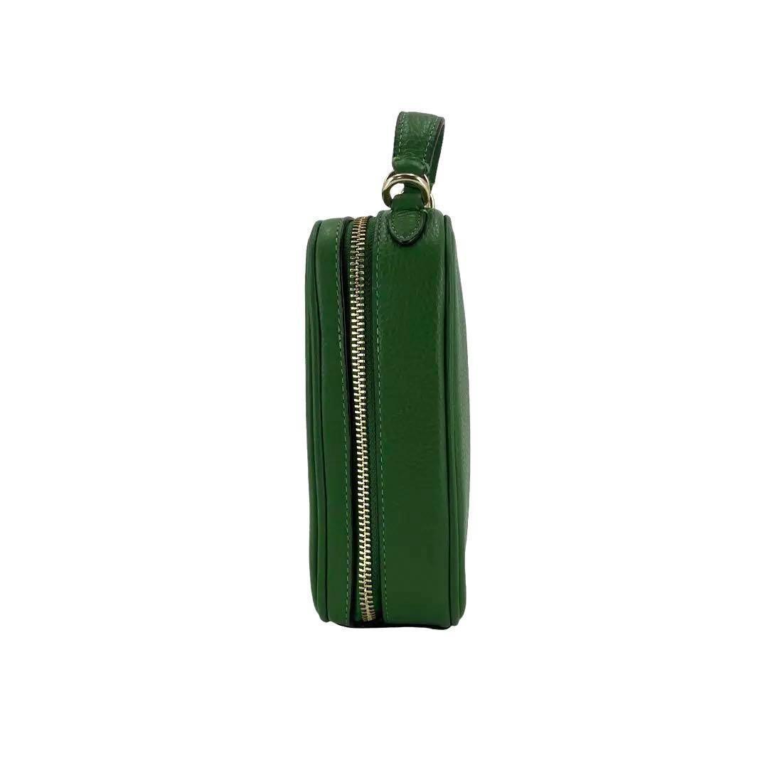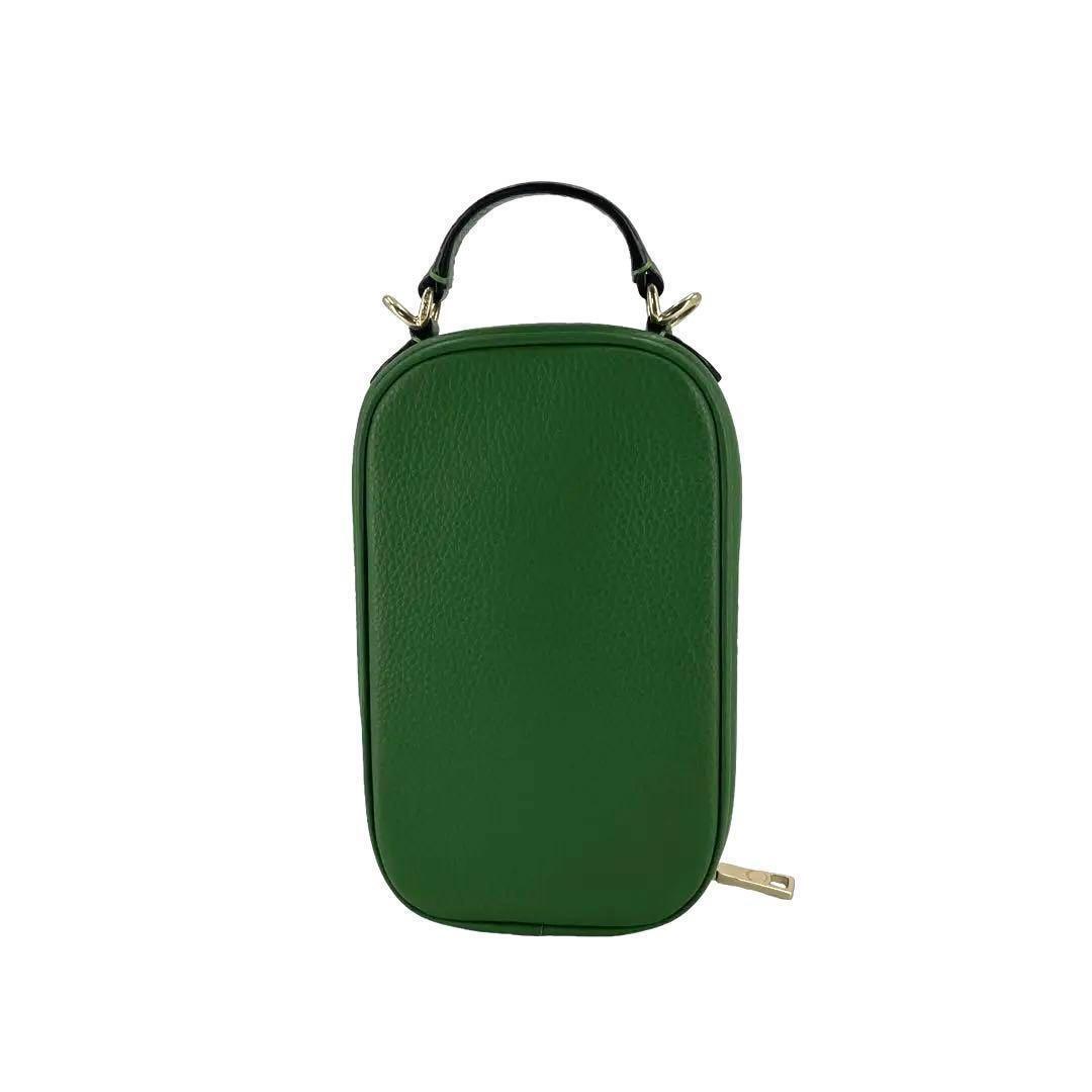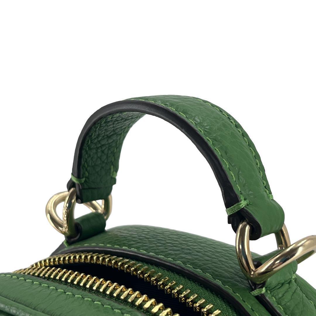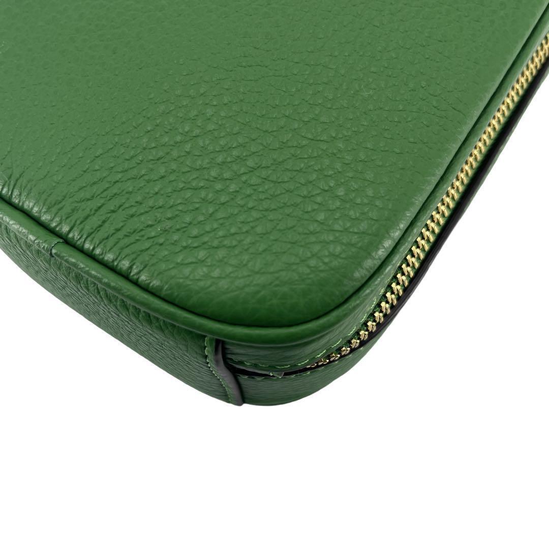 鮮やかな緑色が印象的なコーチのスマホショルダー、ポシェットです