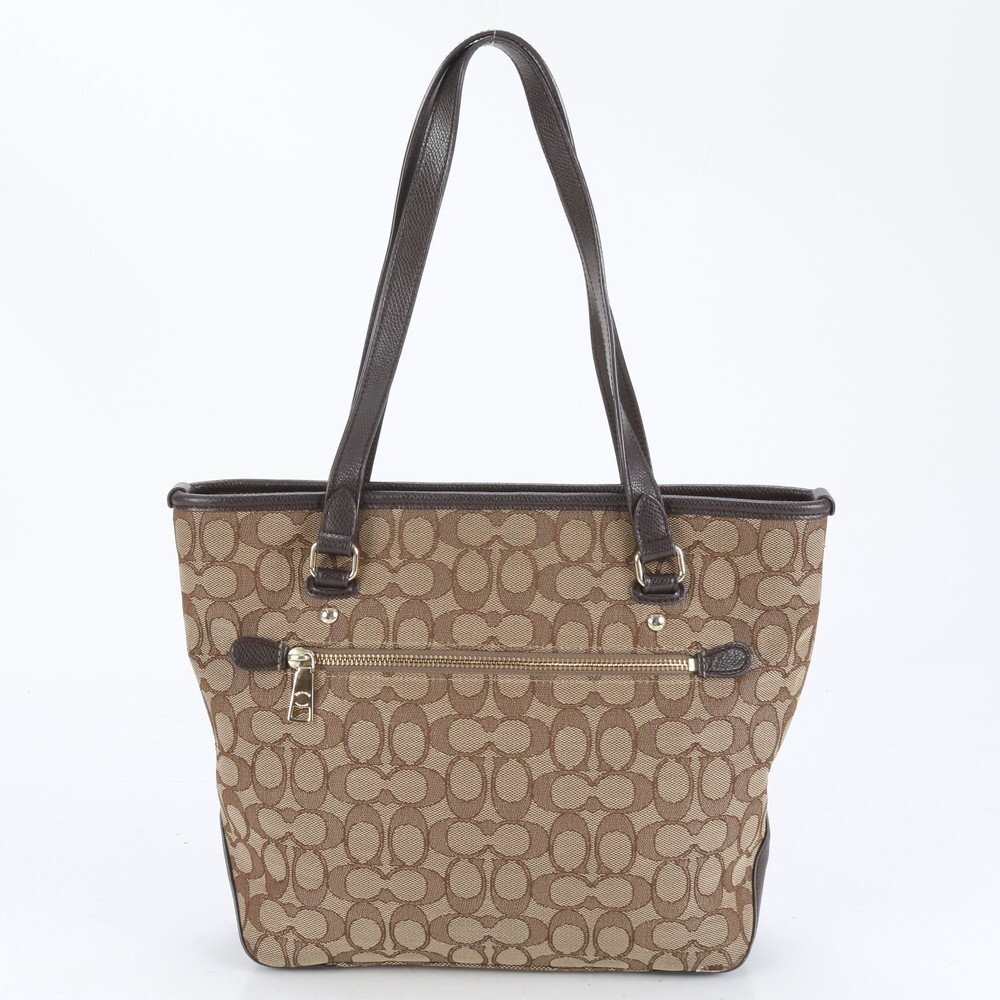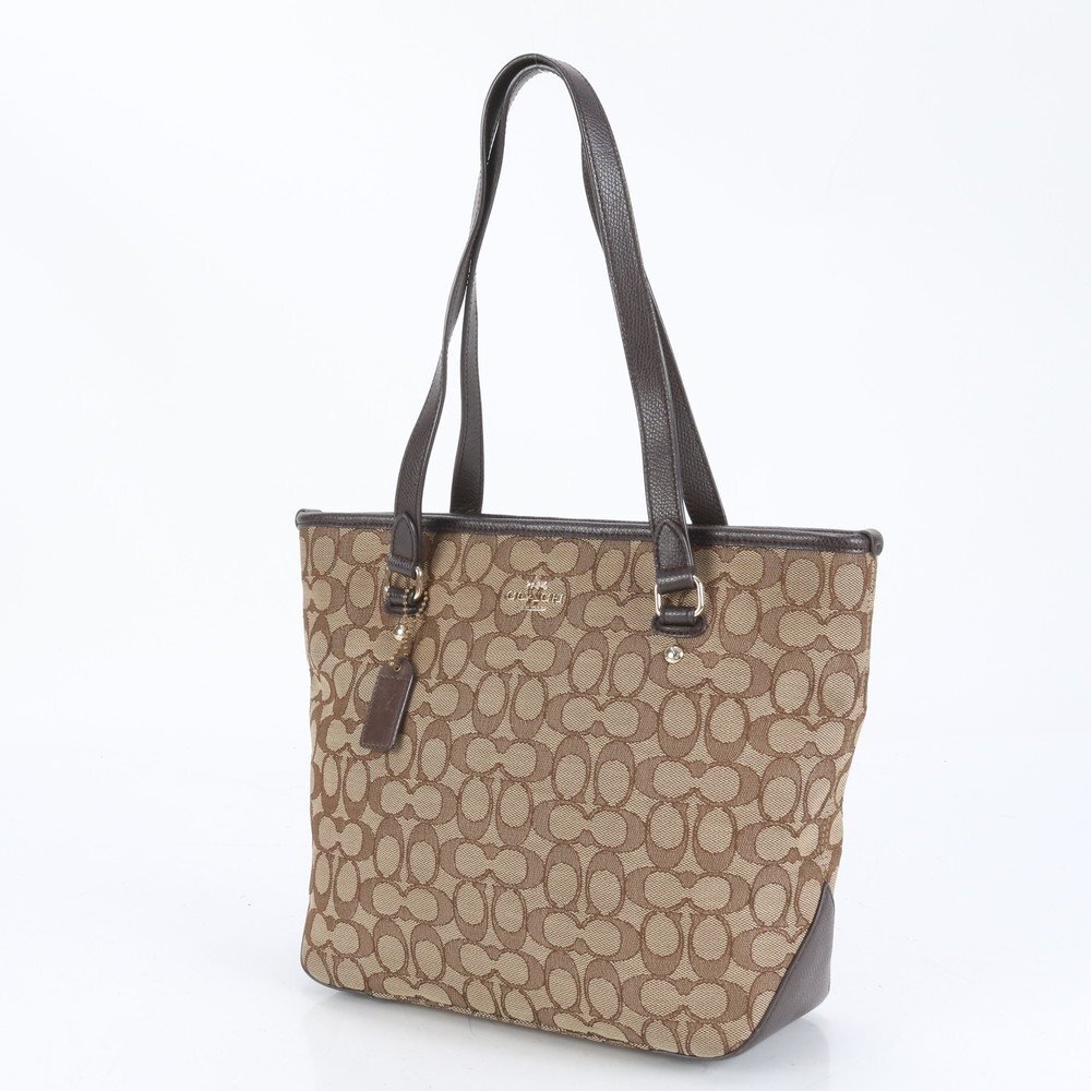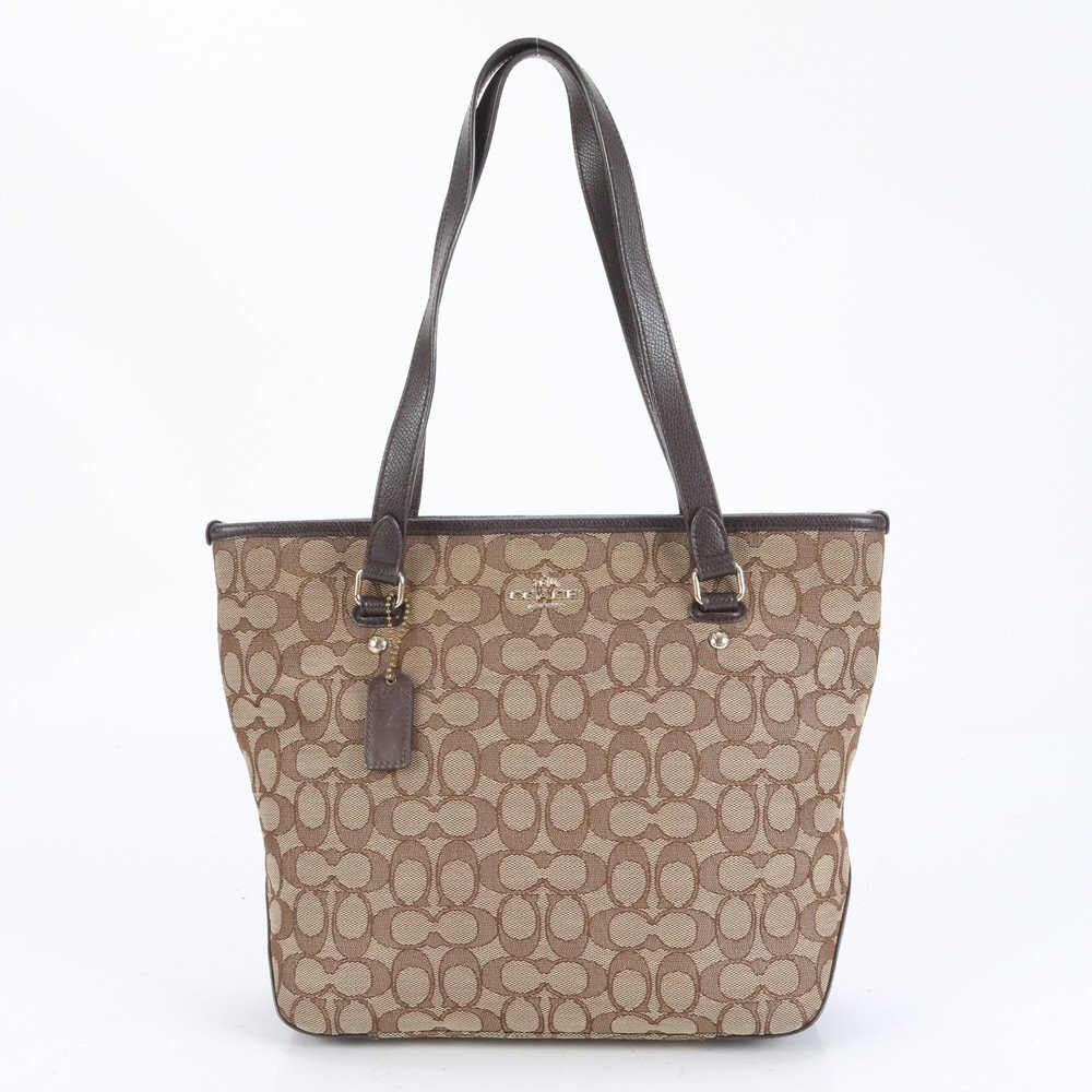 1円■美品■コーチ■シグネチャー キャンバス レザー トート バッグ 肩掛け ショルダー ハンド ブラウン 婦人 レディース RUE CO9-1