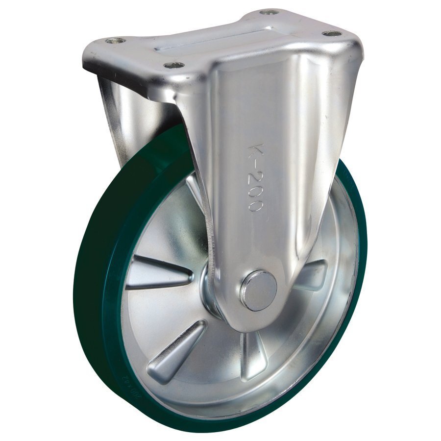 直進性を実現する固定金具とウレタン車輪の組み合わせ。