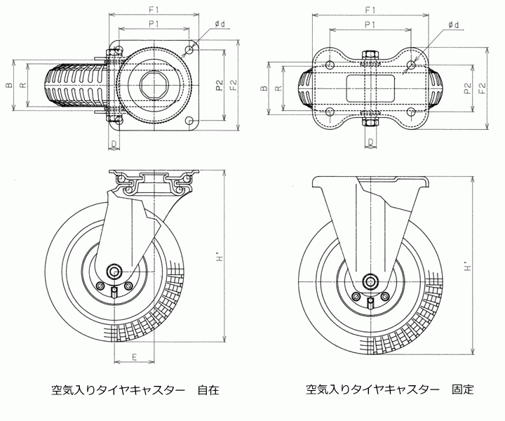 少々荒れた路面に空気入りタイヤキャスター 手押し台車用