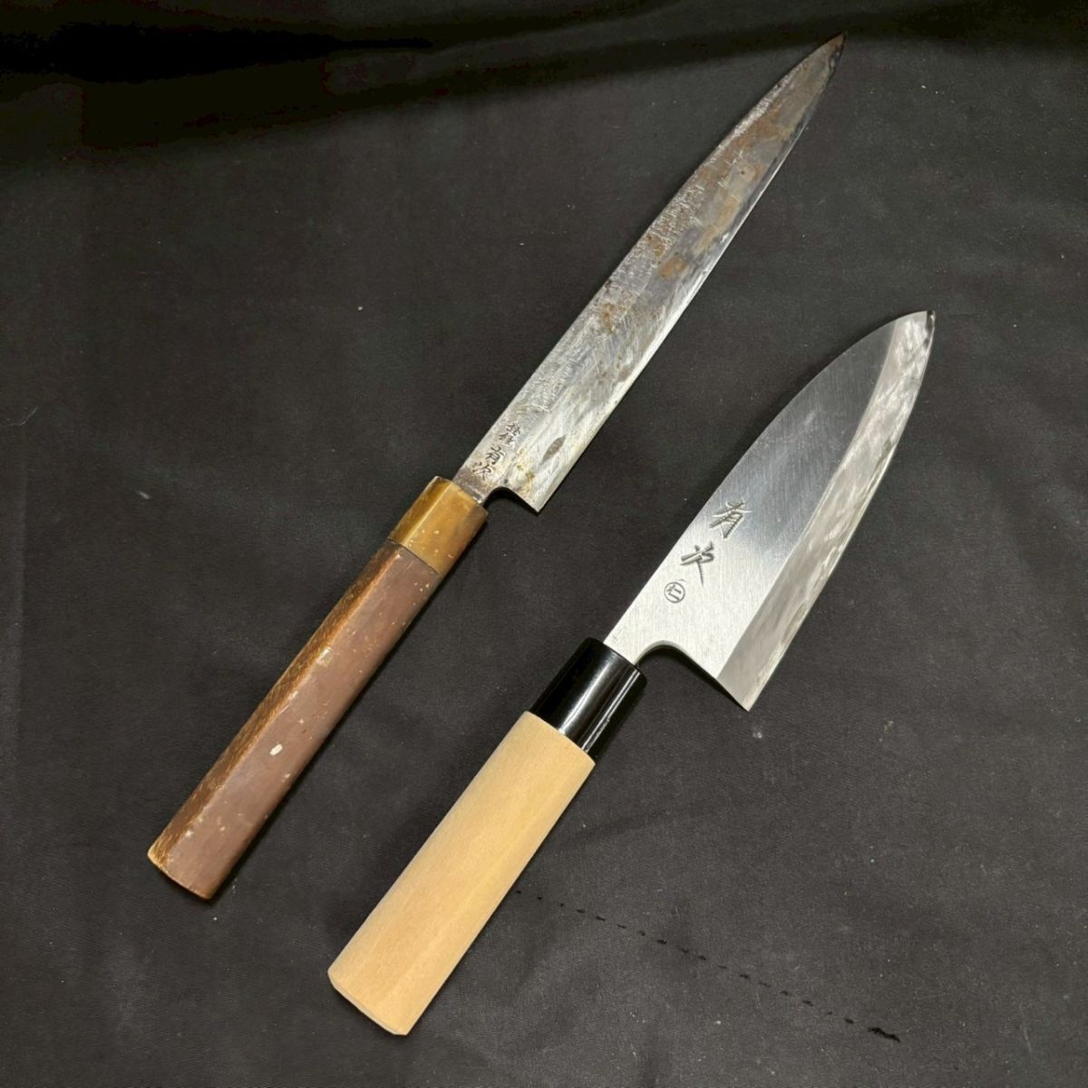 CIM426T 包丁 有次 刺身包丁・出刃包丁 2本 銘有 調理器具 まとめ | |||