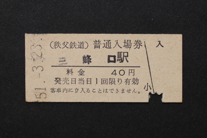 秩父鉄道 入場券 三峰口駅 40円