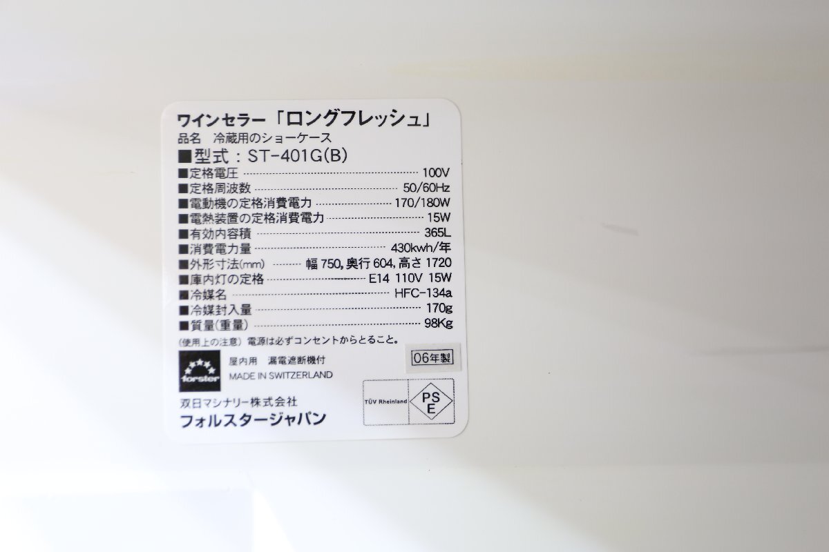| メーカー | フォルスタージャパン | 品名と形式 | ワインセラーST-401G(B) |