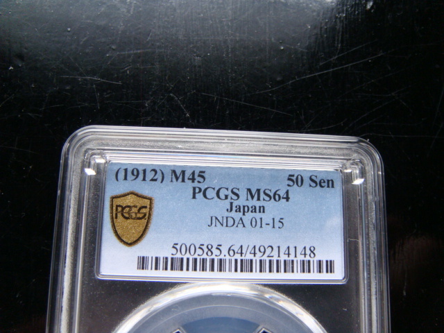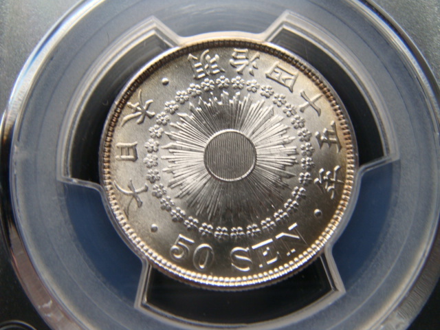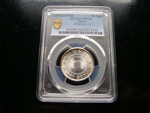 PCGSMS-64/旭日50銭銀貨/明治45年/1912年/未使用/良品です。画像を参照願います。