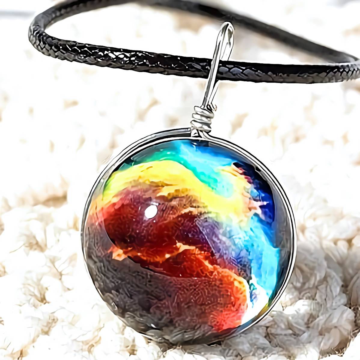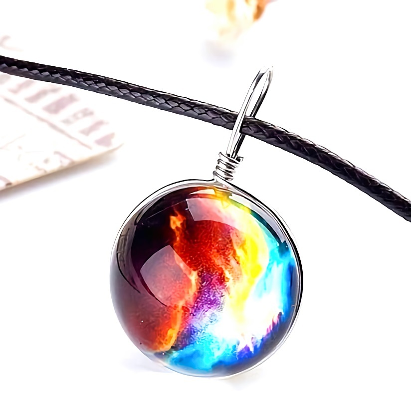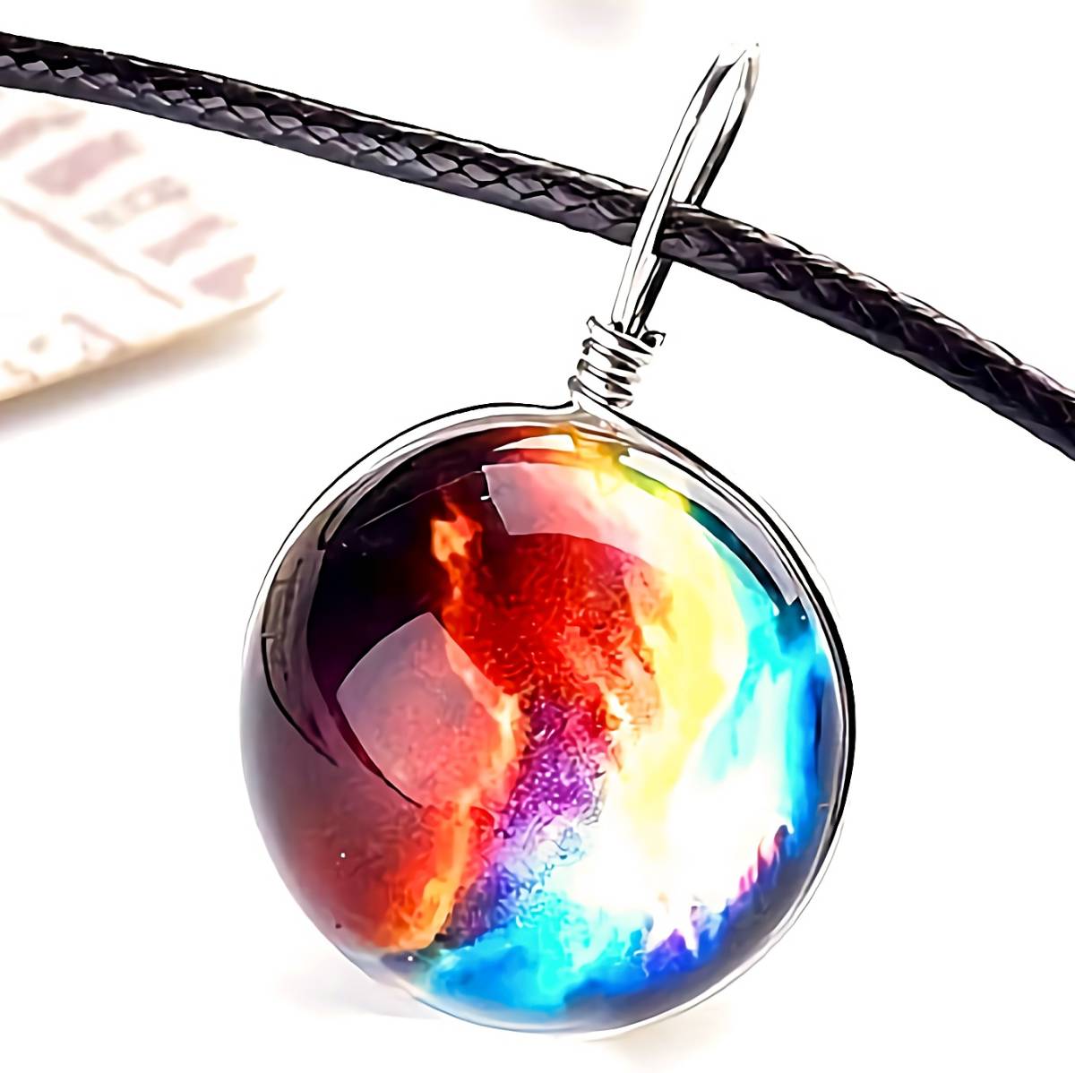 新品★送料無料★宇宙のフレア七色の光 銀河ギャラクシースフィアシルバーネックレス誕生日プレゼント旅行連休秋祭冬盆ギフト国内発送