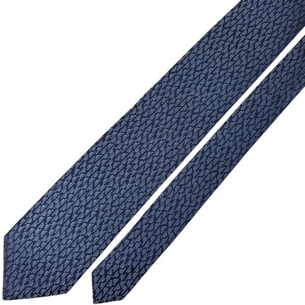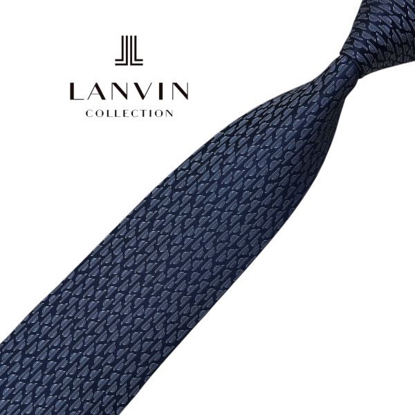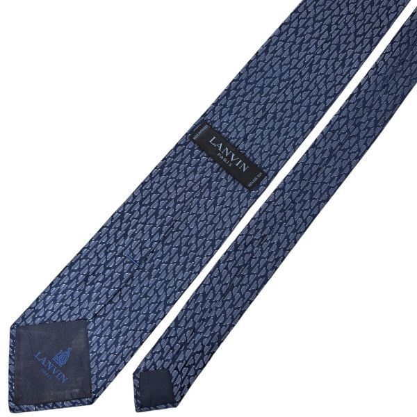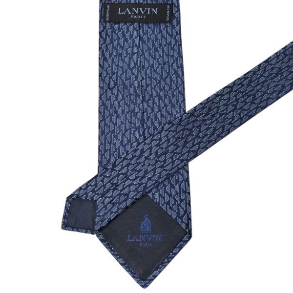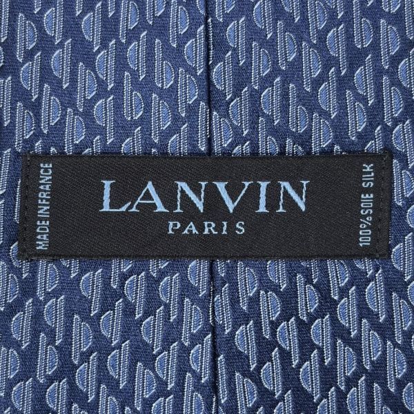 ★美品★やや細め★高級ネクタイ★LANVIN ブルー系 パターン柄 ランバン フランス製 シルク プレス済み USED ネコポス可 t1208