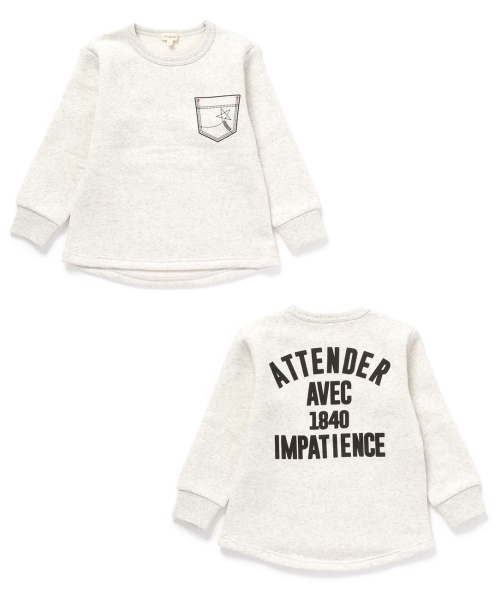ラスト 新品 HusHusH 裏起毛ポケットプリントプルオーバー ナチュラル 11(110cm) 定価1650円