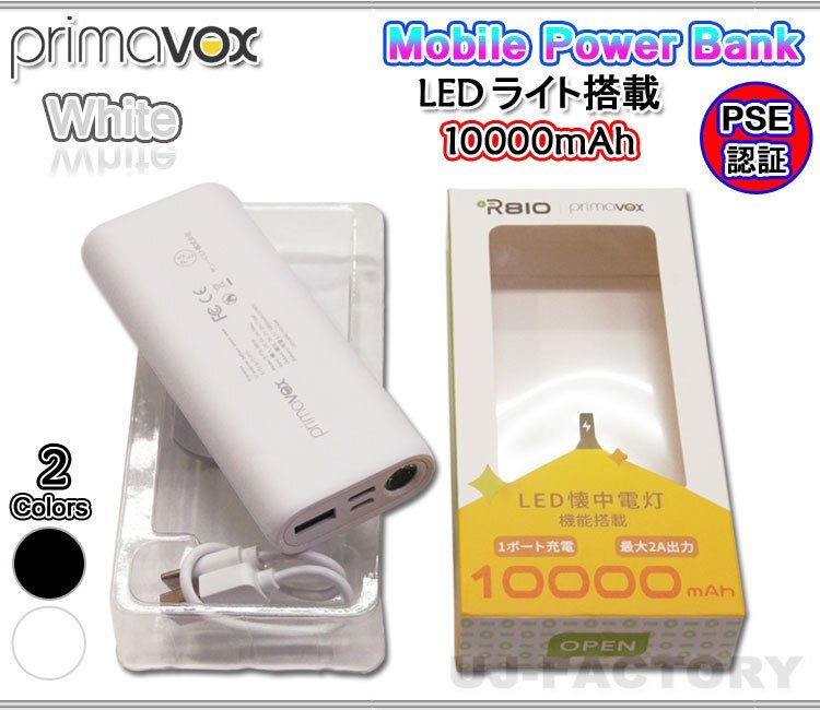 | 【 ここがポイント 】 ★安全機能(マルチプロテクト)を搭載。PSEはもちろん、世界基準の認証を取得! ★ポケットサイズのボディに大容量の10000mAh。フル充電でスマホを最大4回充電可能。外出時も安心の残量表示機能♪ ★非常時に役立つLEDライトを搭載。出力用USBアウトプットx1。蓄電(入力)用の「microUSBポート」と「Type-C入力ポート」を装備。 ★ほとんどのスマホ・タブレットに対応。 ★もしもの時の防災用品としてもお勧めです。 ★設定カラーは、ブラック、ホワイトの2色。このオークションは、「ホワイト」になります。(※商品ページ内の画像は一部参考画像として異なるカラーを使用しています。) ★安心の180日保証付