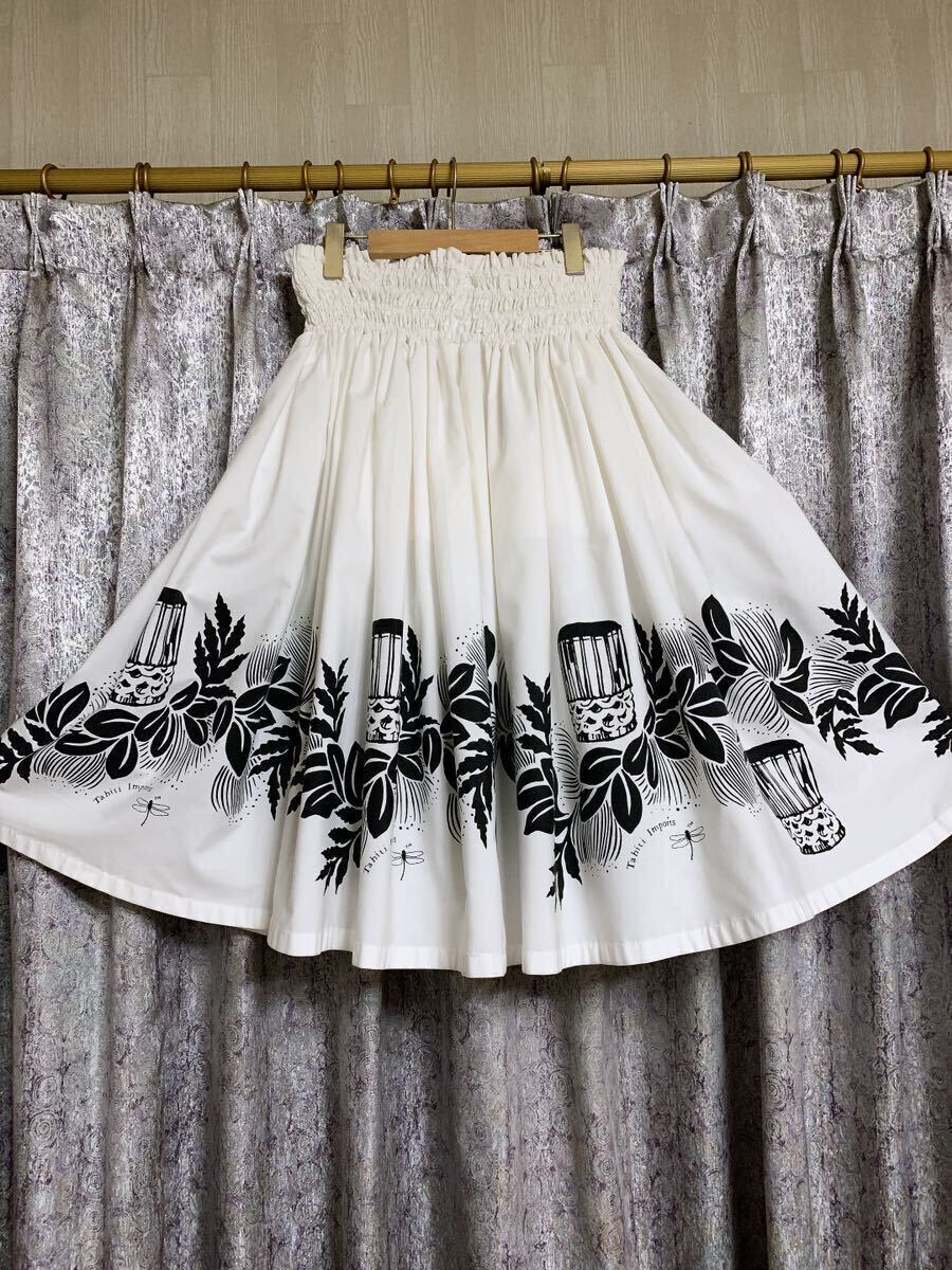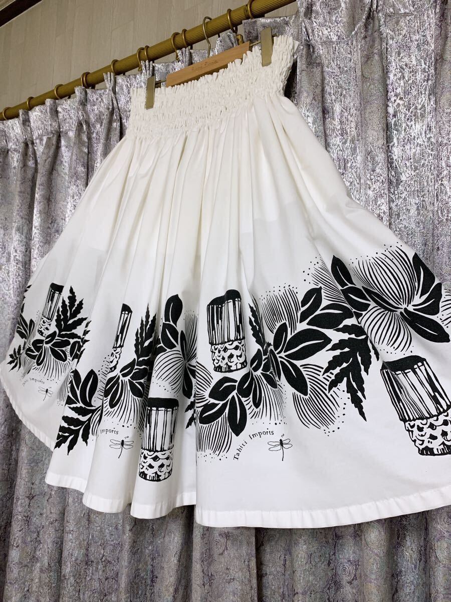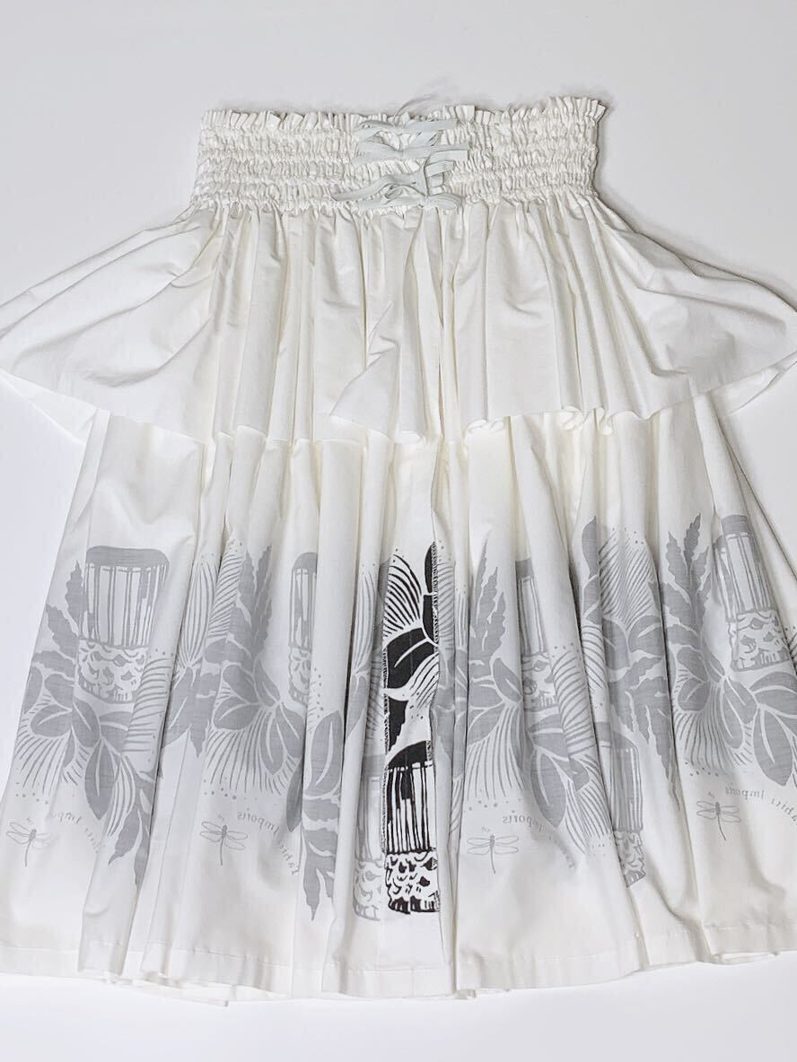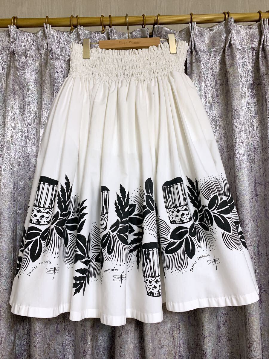 清楚で神聖なホワイトにブラックでレフアやパフドラムがプリントされています。