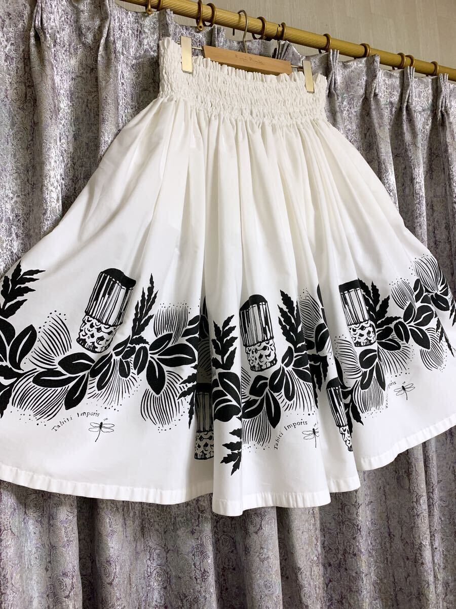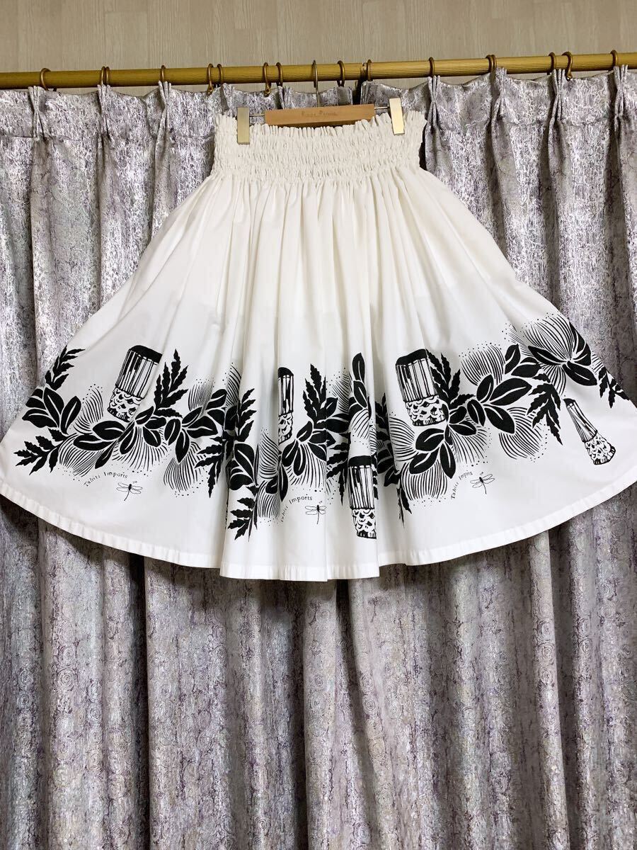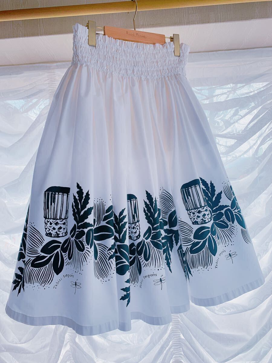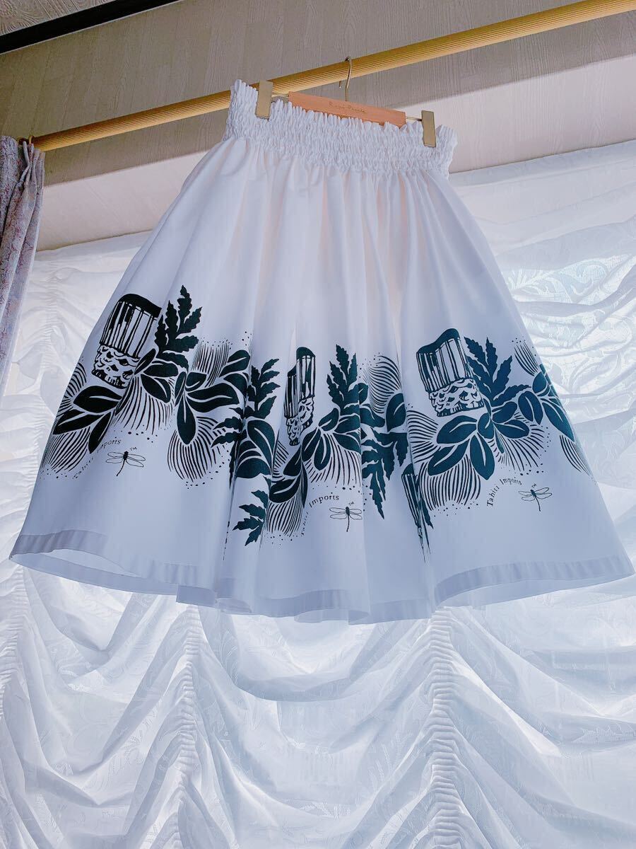 清楚で神聖なホワイトにブラックでレフアやパフドラムがプリントされています。