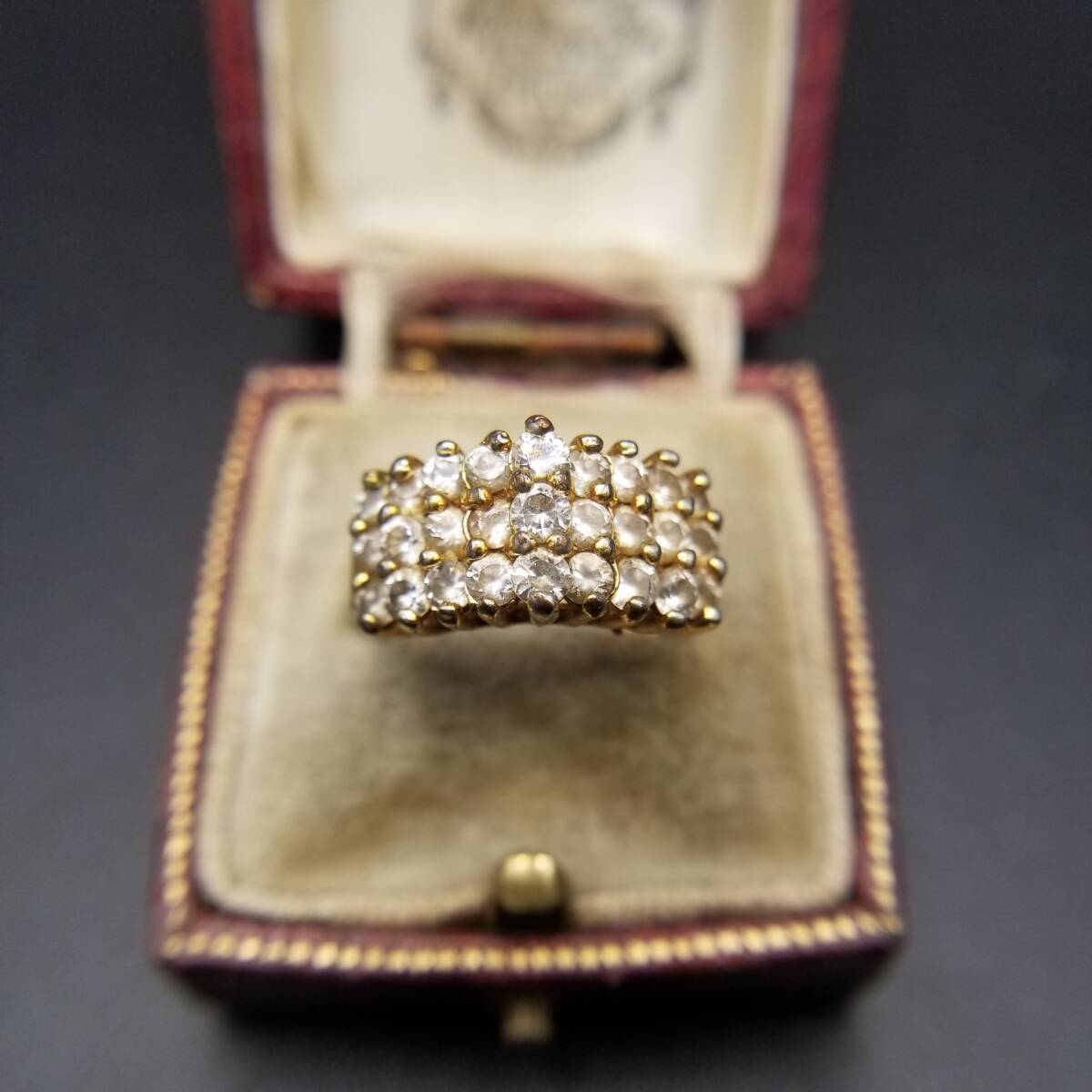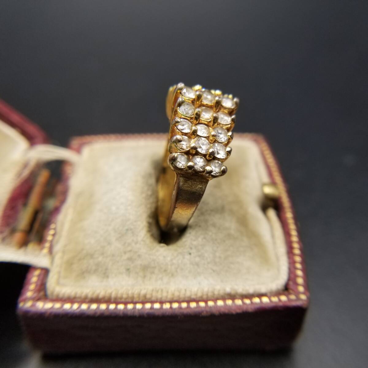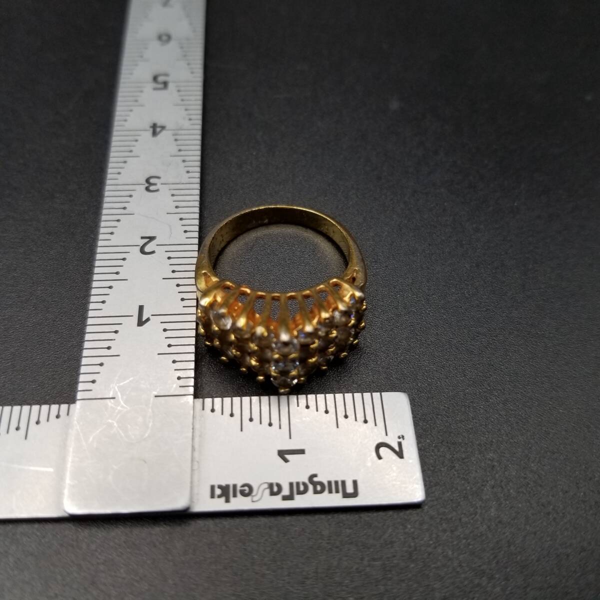 3段 山型 キュービクルジルコニア エレガント ヴィンテージ リング ゴールドトーン 指輪 ファッションジュエリー Y18-Y