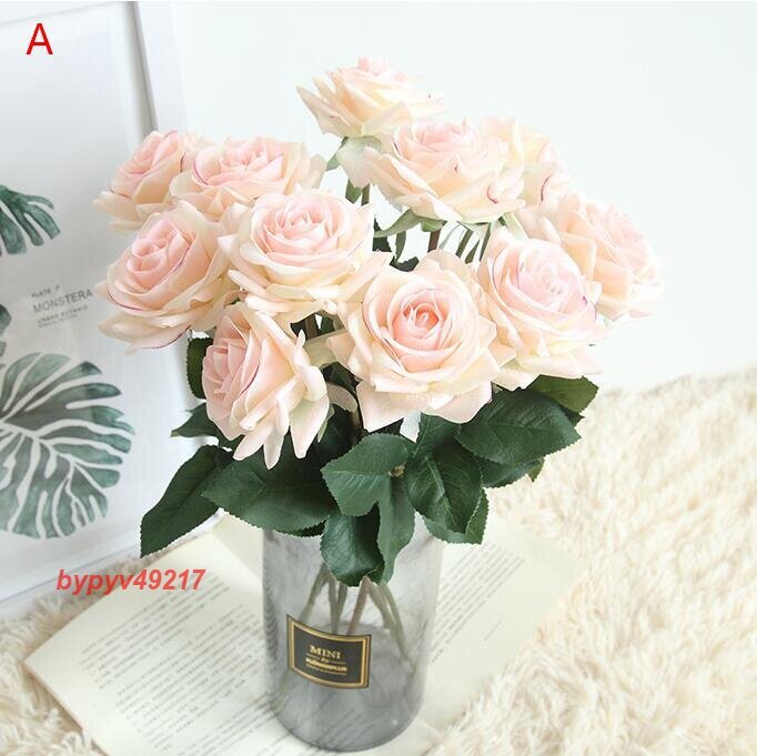 アートフラワー 造花 バラ 花飾り 高さ約42cm ハンドメイド 10本セット