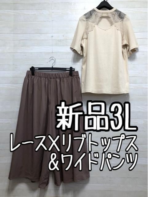 新品☆3L♪フェミニンセット♪リブトップス&ワイドパンツ♪☆f200