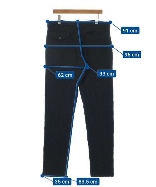 実寸(cm)ウエスト:91cm,裾周り:35cm,ヒップ:96cm,わたり:62cm,股上:33cm,股下:83.5cm
