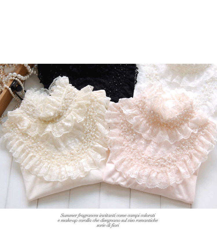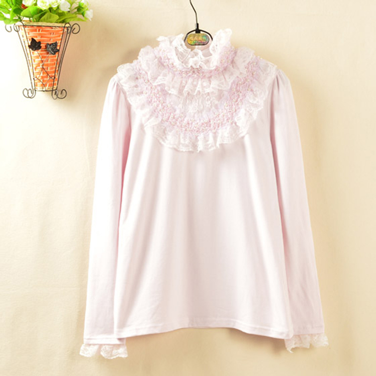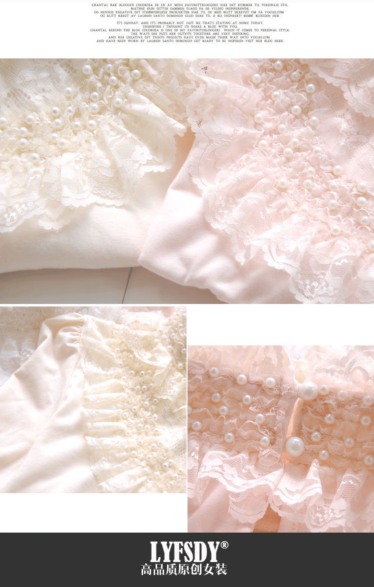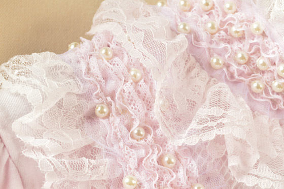 LDL274#大きいサイズ ピンク たっぷりパール装飾とレースのプルオーバーブラウス XXL