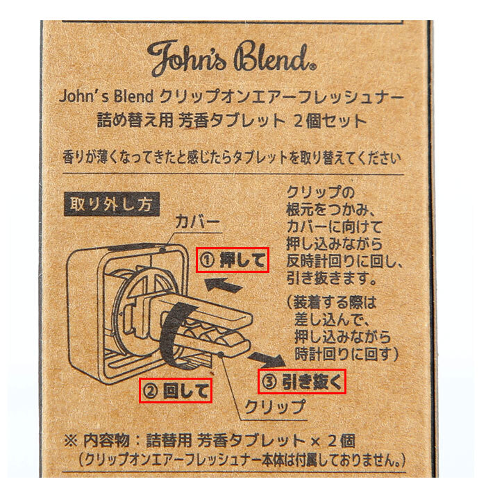 | 商品名 | ジョンズブレンド クリップオンエアーフレッシュナー 詰め替え用 |
