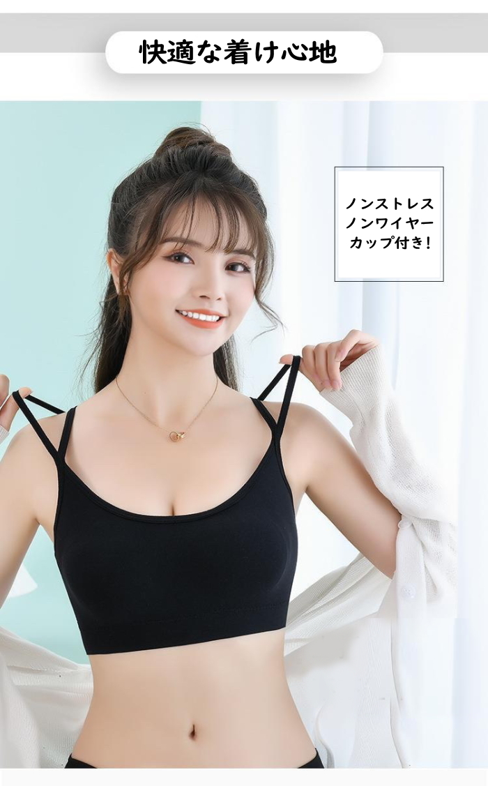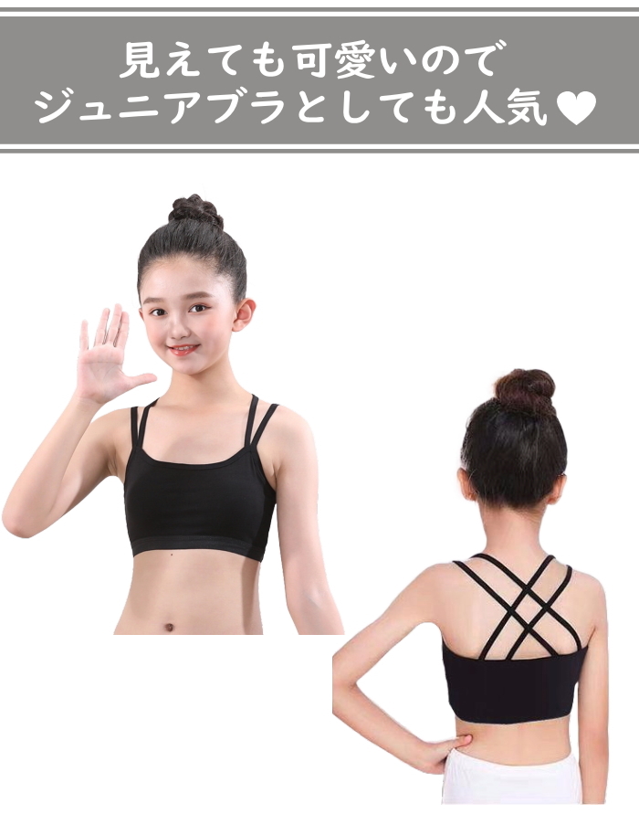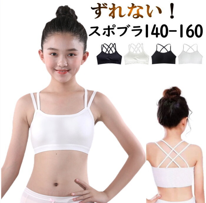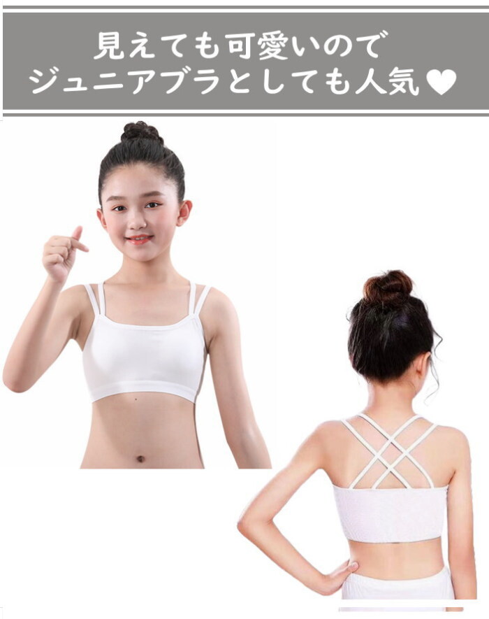 ダンス ブラトップ【白 M】キッズ ジュニア ずれない 見せ ブラ インナー カップ付き スポーツ ブラ ノンワイヤー cy162-p0