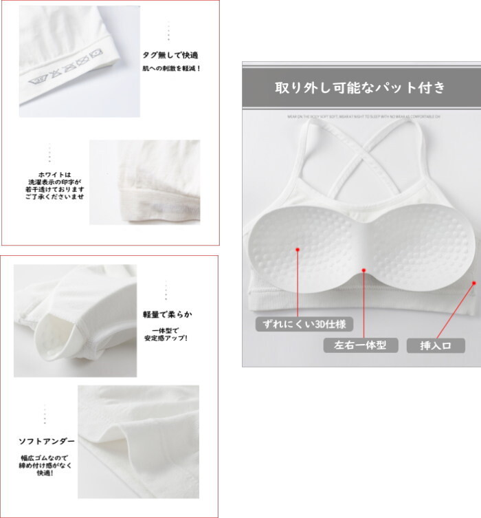 取外し可能なインナーカップ付なのでブラをつけなくても大丈夫♪
