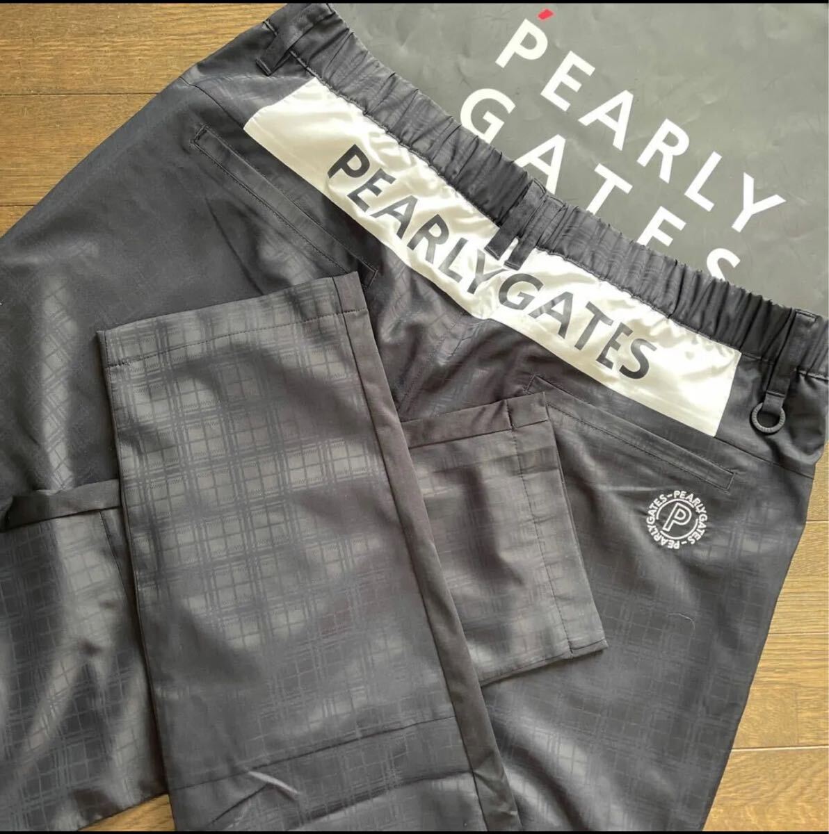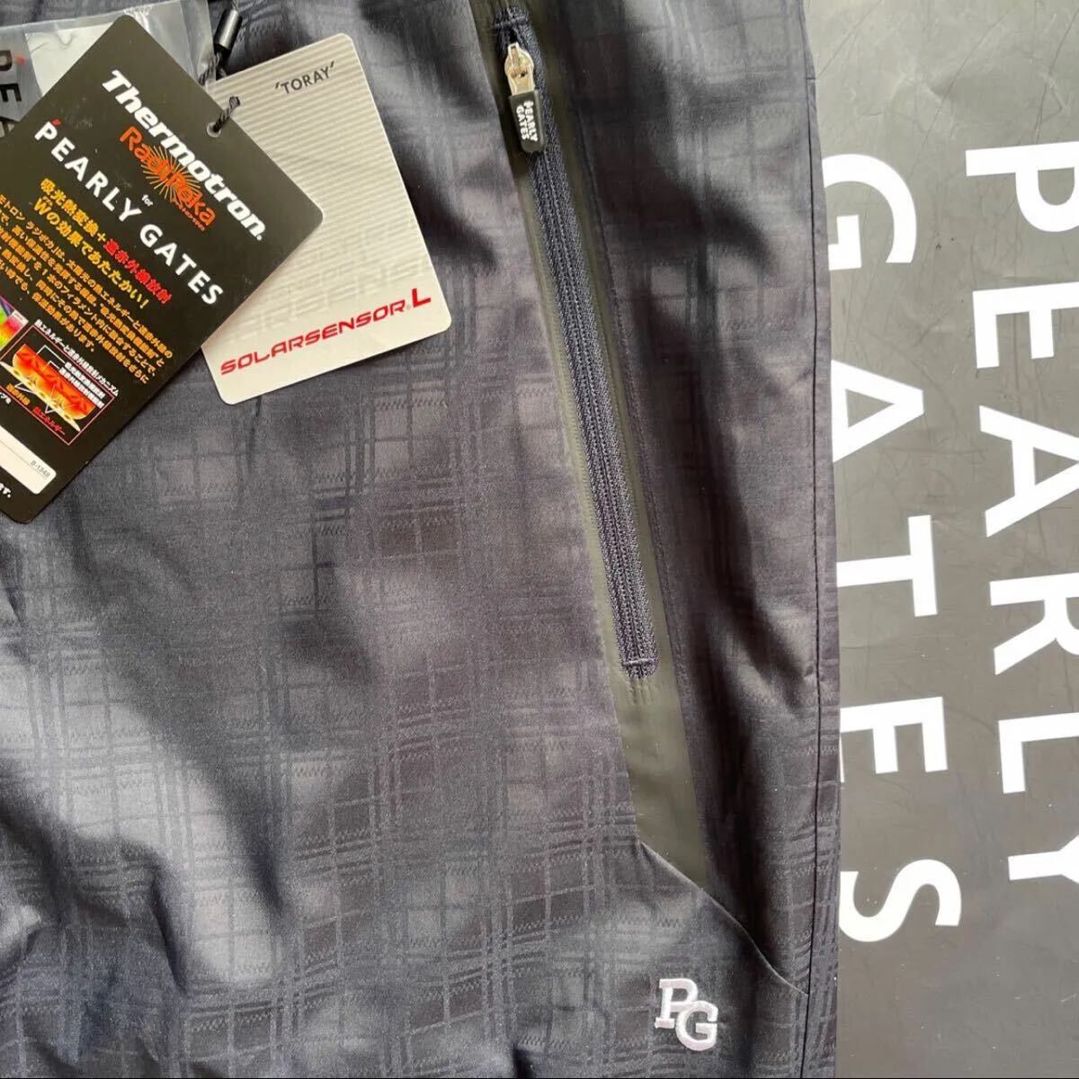 サイズ(5)ウエスト80-84cm(メーカー参照)平置き採寸:ウエスト41cm〜サイドからゴムストレッチ加工/股上27cm/股下79.5cm/裾幅17cm/素材:ポリエステル製/サーモトロンラジポカ:吸光熱変換+遠赤外線放射W効果/太陽光熱エネルギーと遠赤外線相乗効果で高い保温性キープ/TUFLEX STRETCHノンコーティング防水撥水透湿性防風性加工/ベンチレーション機能により蒸れずに通気性に優れ衣服内ドライコントロール加工/ソーラーセンサーL:太陽光熱変換.制電性両立素材/屈伸容易カッティング快適ストレッチ加工/開閉部:PGロゴボタン+ジッパー/ベルトループ+PGロゴDカン付/PGロゴスライダー付ジップポケット×2/ポケット×2/カラー希少ネイビー×光沢性チェック柄BIG PEARLY GATESロゴ+PGワンポイントロゴ+PGサークルロゴ刺繍加工/TSI最新識別タグ付/直営店秋冬モデル希少完売大特価商品(定価30,800円税込)店頭購入の為値札無し宜しくお願い致します((価値観の相違など回避の為パーリーゲイツ商品に不慣れな方や色合いが特に気になる方はご遠慮下さい)))写真撮影での色合いが遮光率により実際の色と異なる場合が有ります。予めご了承願います。最終お取引完了可能な方でのご落札をお願い致します。