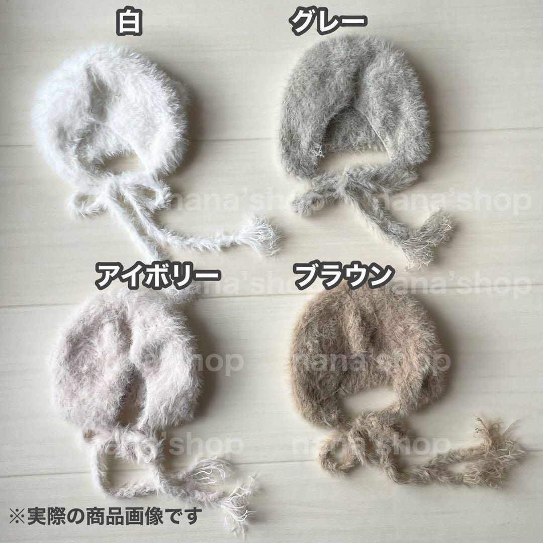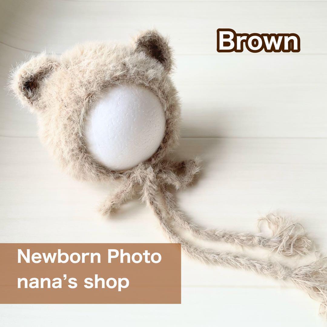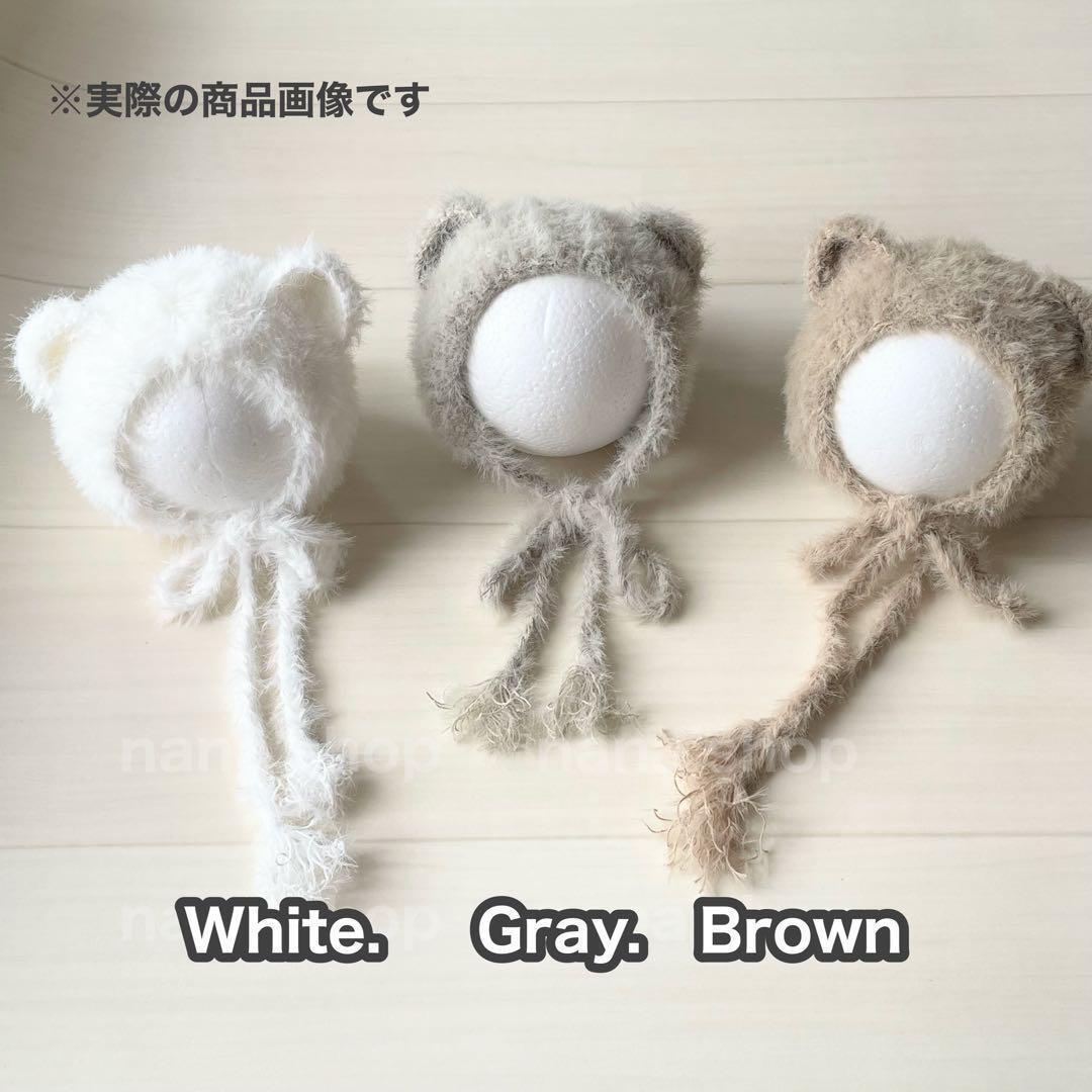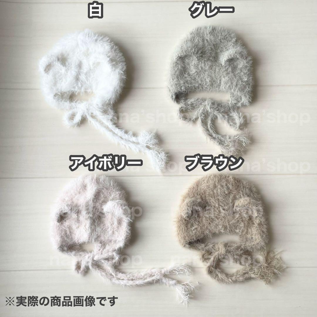ニューボーンフォトにピッタリな毛足が長く、とってもフワフワのくま帽子になります