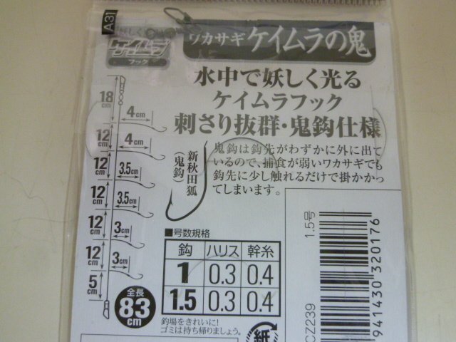 ・号 数 1.5号 ・ハリス 0.3号 ・幹 糸 0.4号 ・ 枝 3~4cm ・全 長 83cm | |