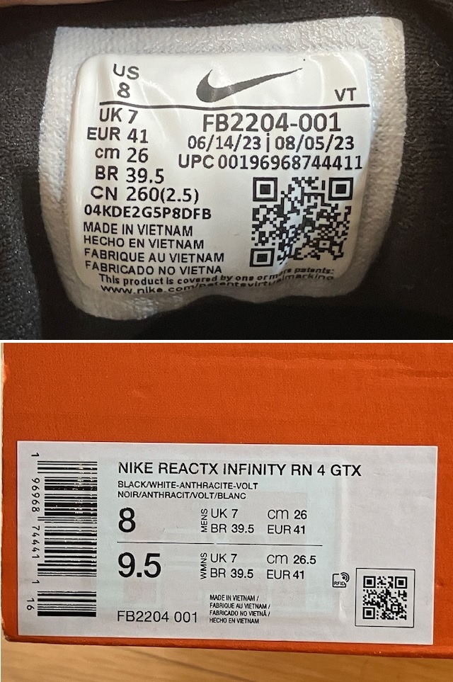 送料込み 新品 NIKE 26cm US8 REACTX INFINITY RN 4 GTX DNU ナイキ リアクト インフィニティ GORE-TEX ゴアテックス 防水 送料無料