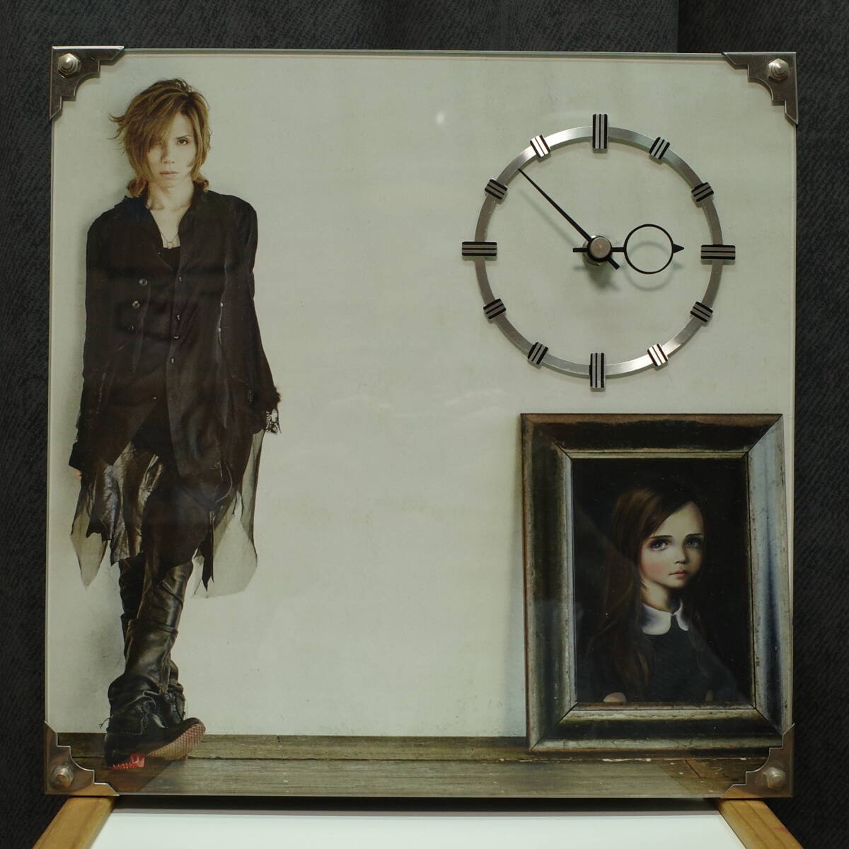 [昭和レトロ] 経年 故障ジャンク品 Acid Black Cherry アシッド ブラック チェリー ポスター切り抜き背景 壁掛け時計